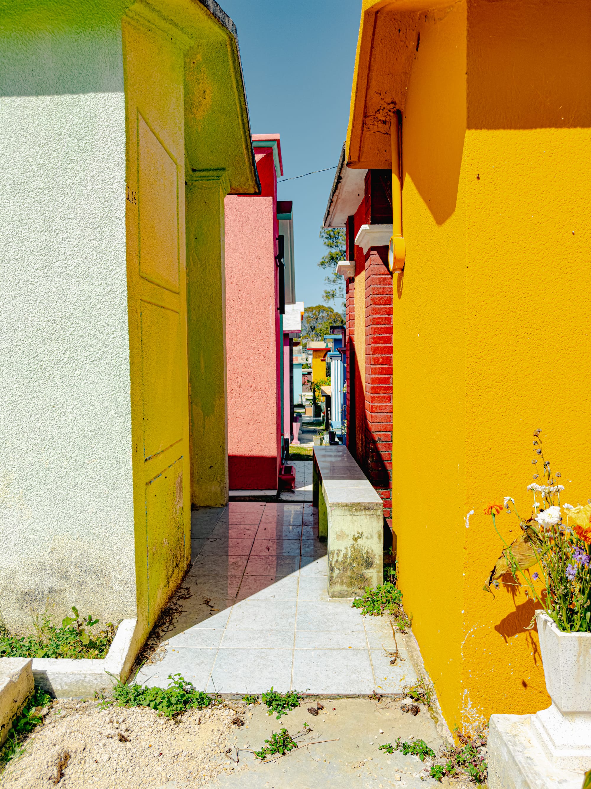 Historic brick mausoleums and bright florists frame life’s continuity in San Cristóbal