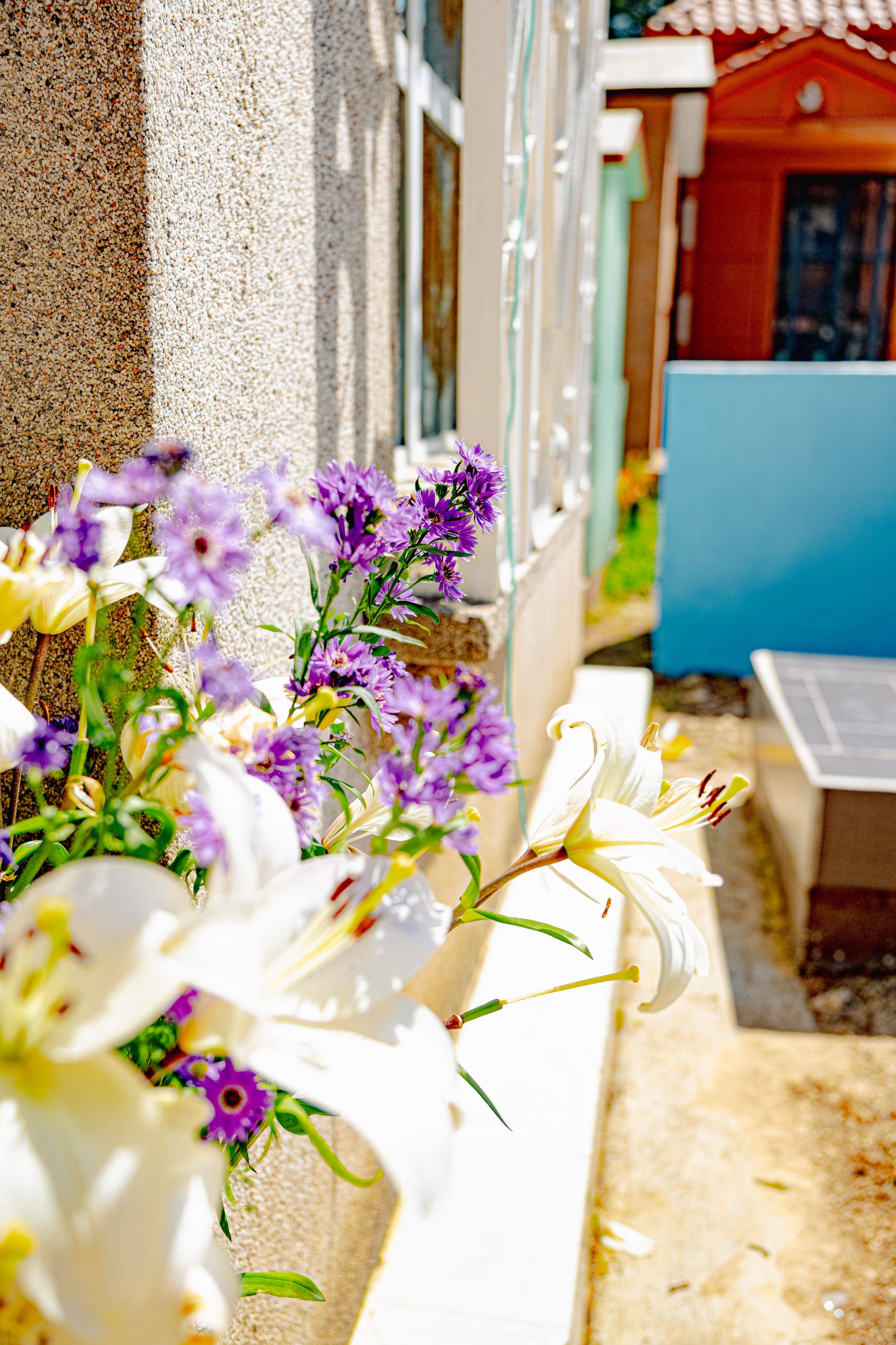 Alongside them, other blooms—purple bougainvillea, lilies, chrysanthemums—added texture to the palette. Some graves had small trees growing beside them, offering shade and continuity. The interplay of color and life in this space made it impossible to see death as absence. Everything seemed in motion—paintbrushes sweeping, water sloshing, laughter carrying across the air.