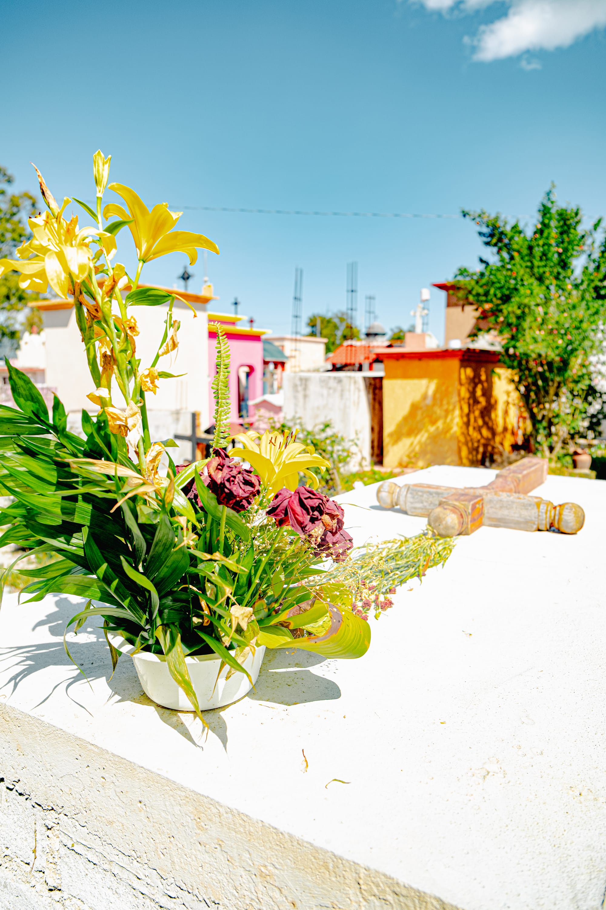 Fresh flowers and painted tombs await the coming Day of the Dead visitors