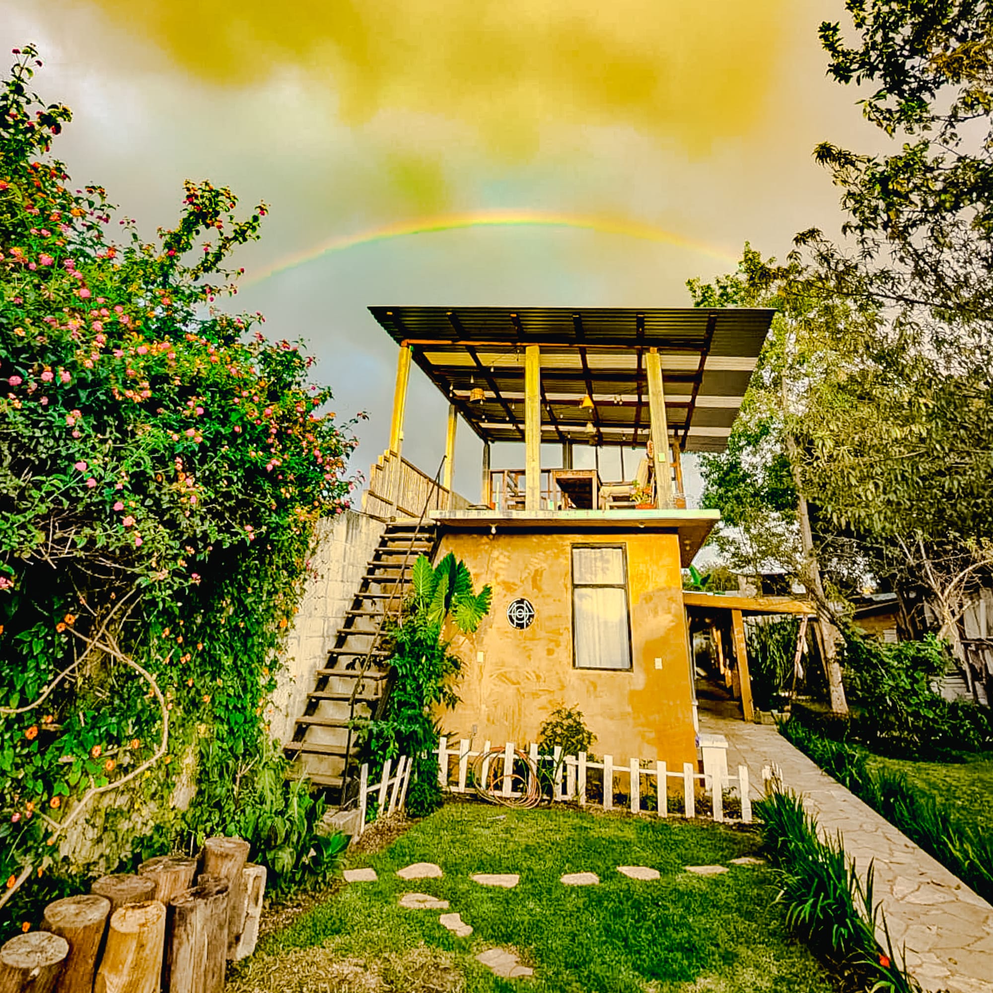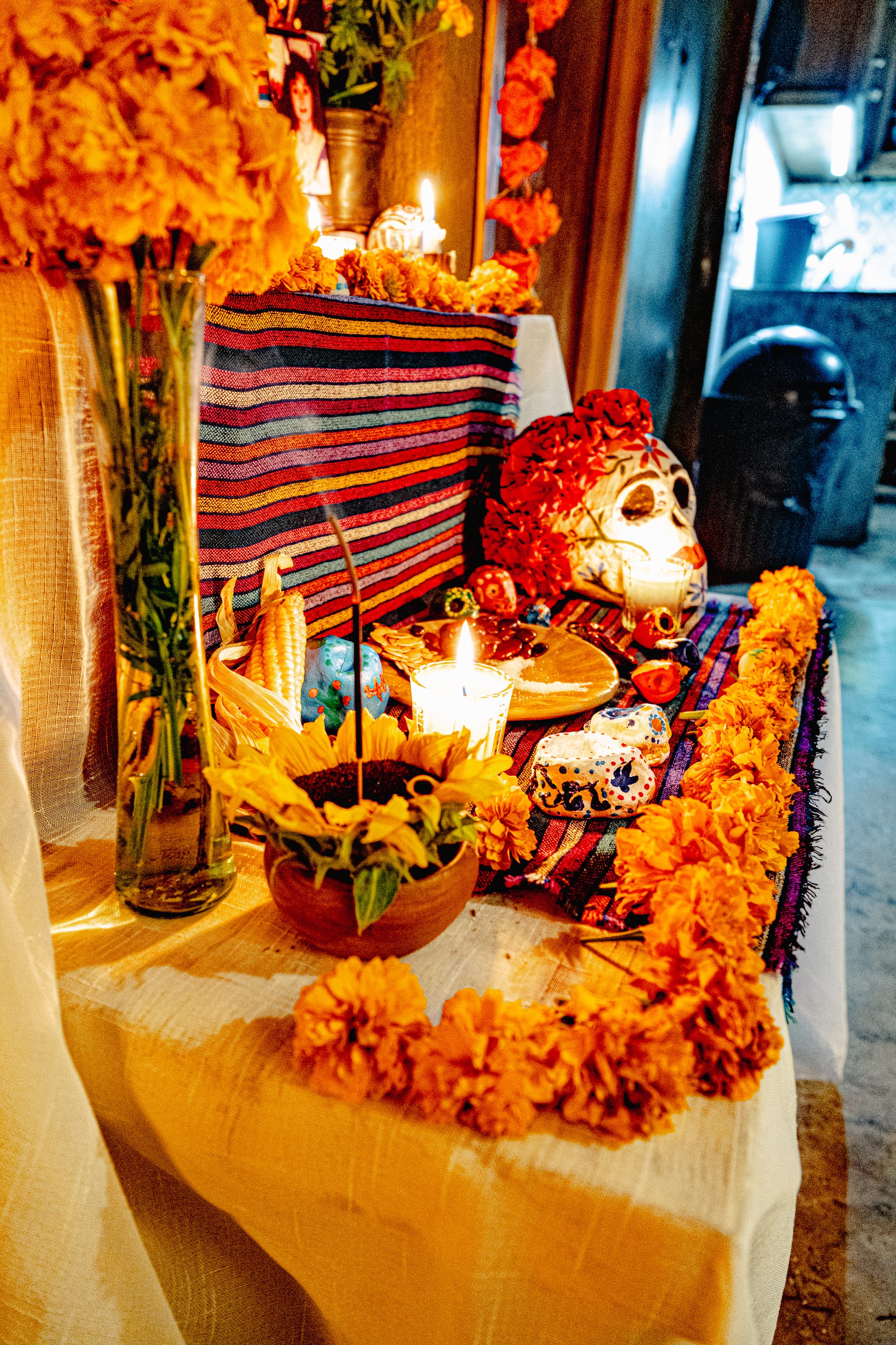 A rainbow over Co404’s terrace after an afternoon rain, and a Día de los Muertos altar