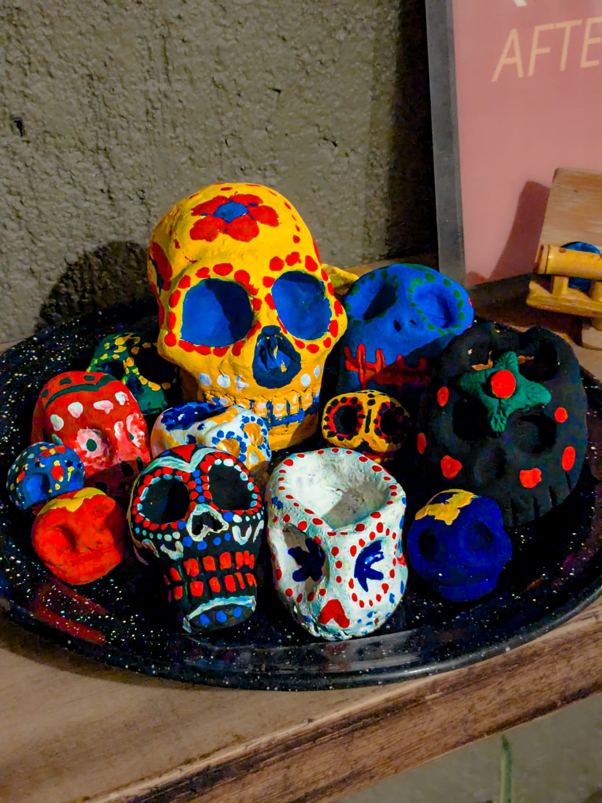 The first activity took place several days before Día de Muertos. As a group, we made clay skulls by hand, shaping each one slowly and imperfectly before setting them aside to dry. Later, we painted them—some carefully, some playfully—turning the process into a quiet, communal way of easing into the days ahead.