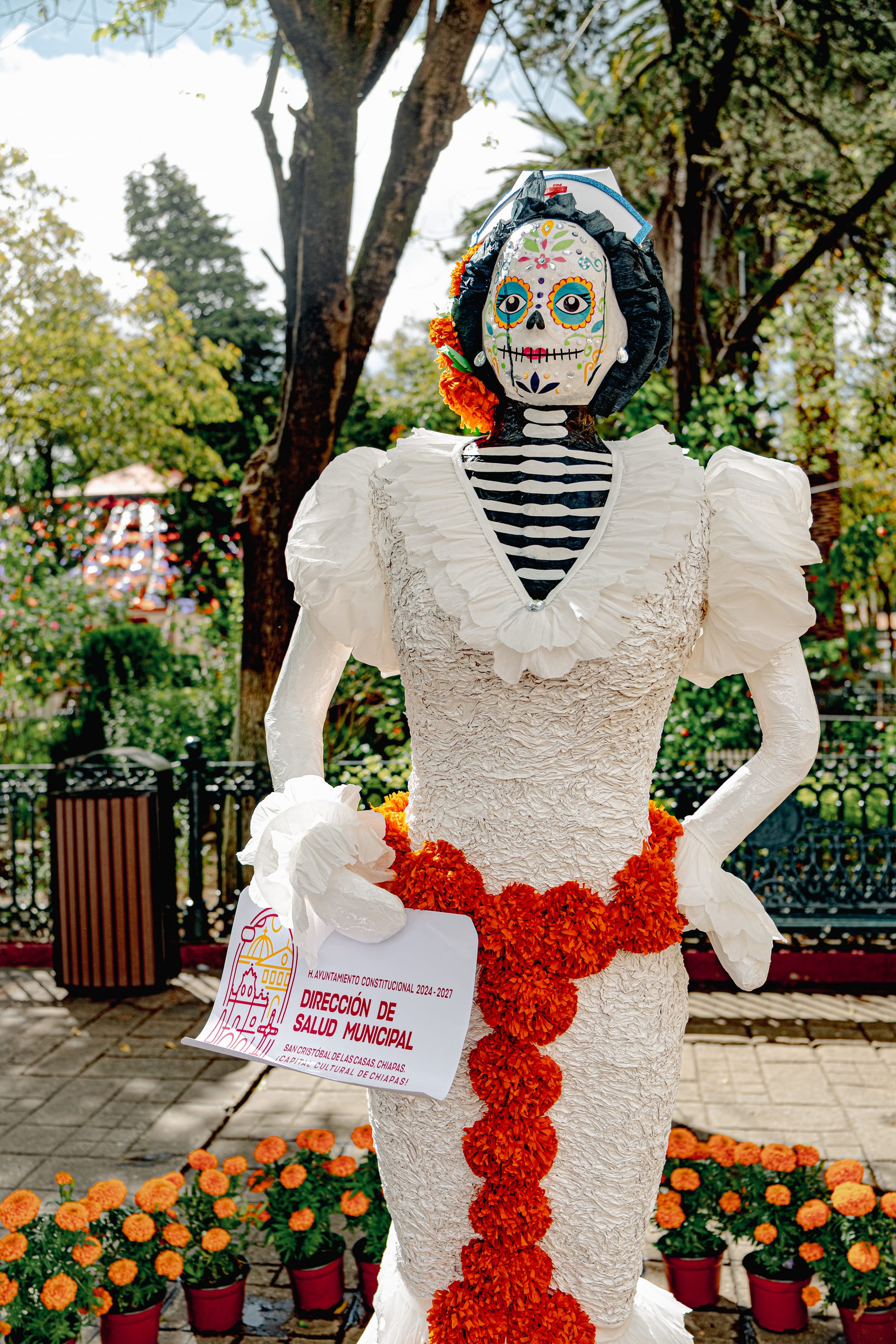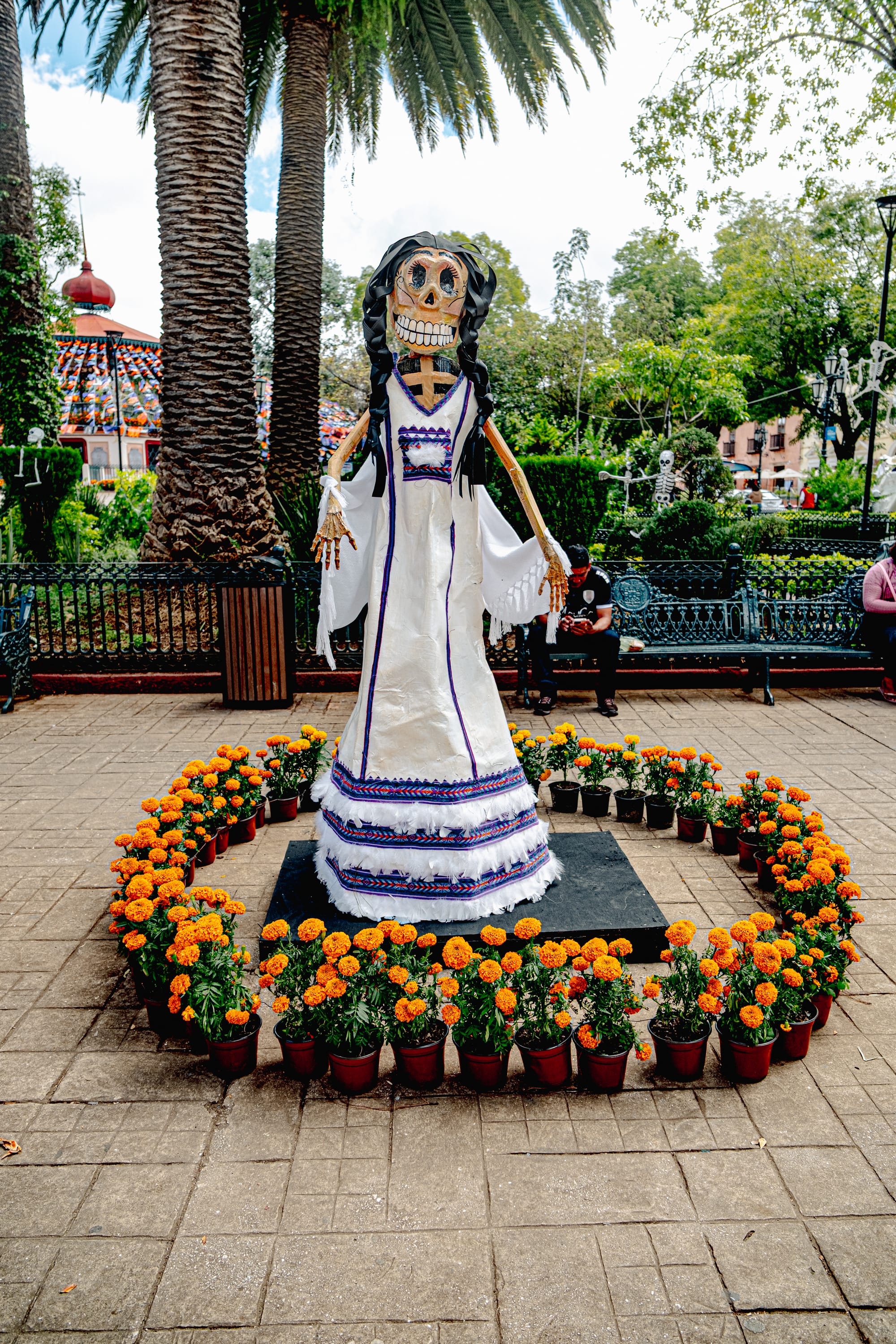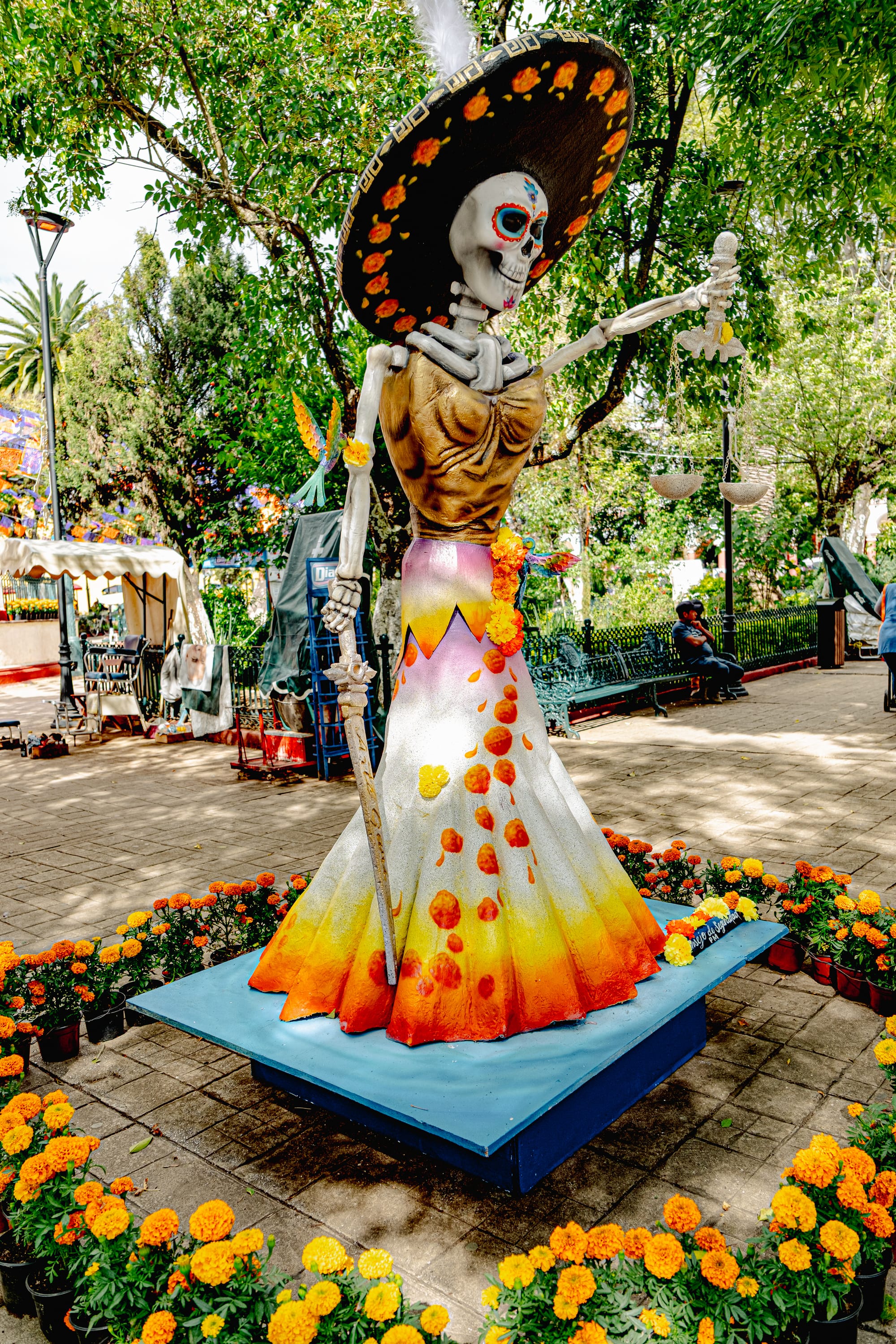 Floral Catrinas standing watch in the main plaza