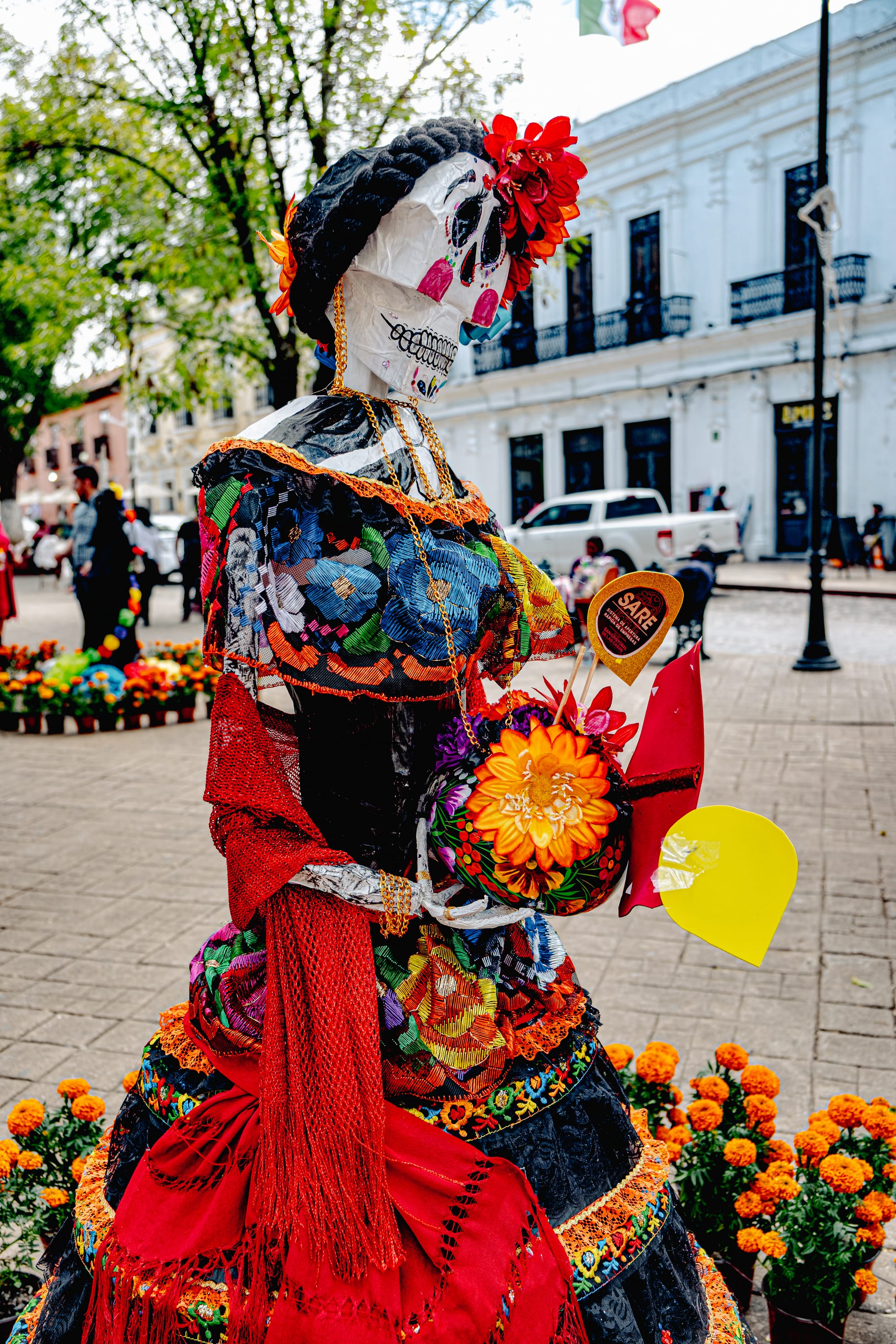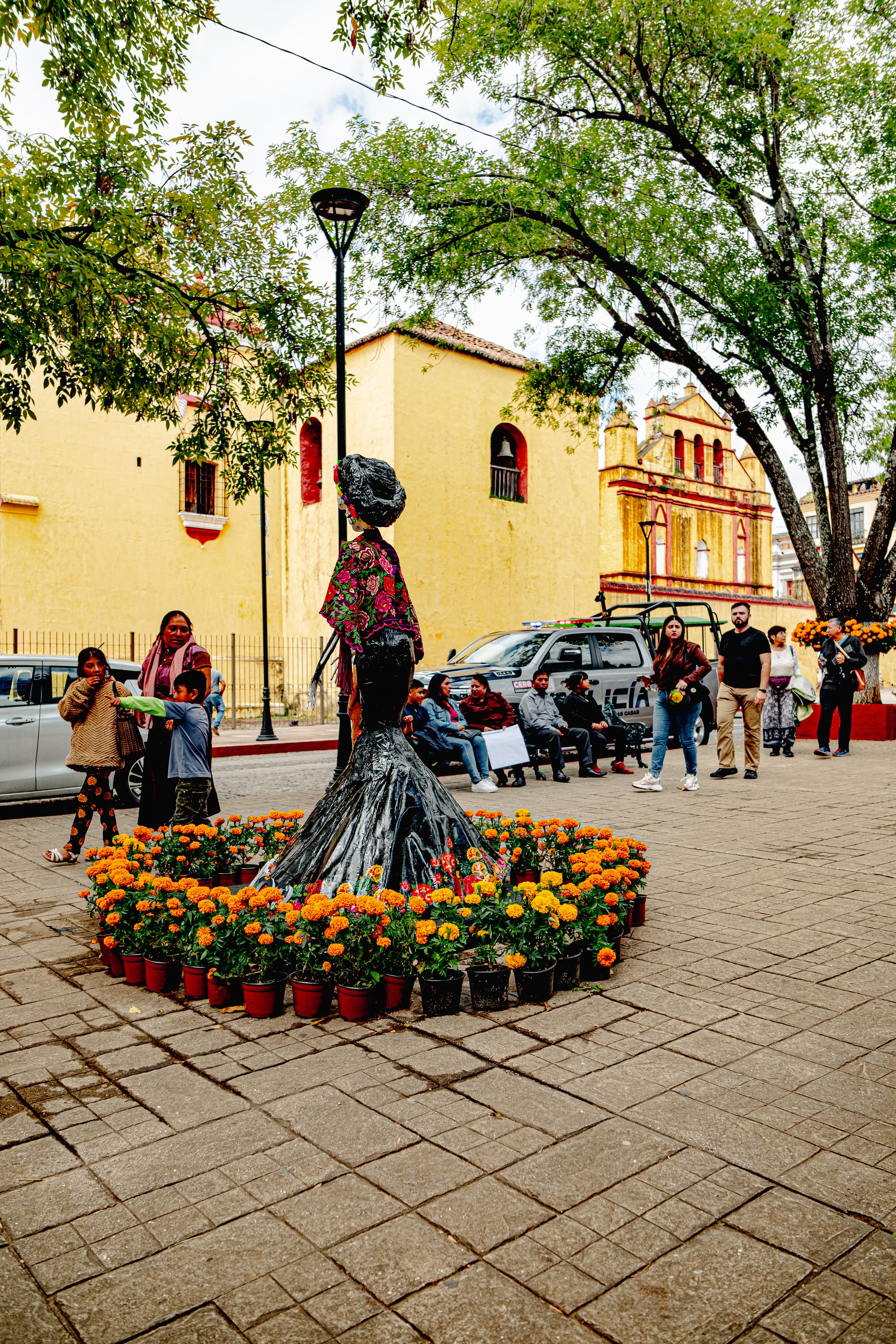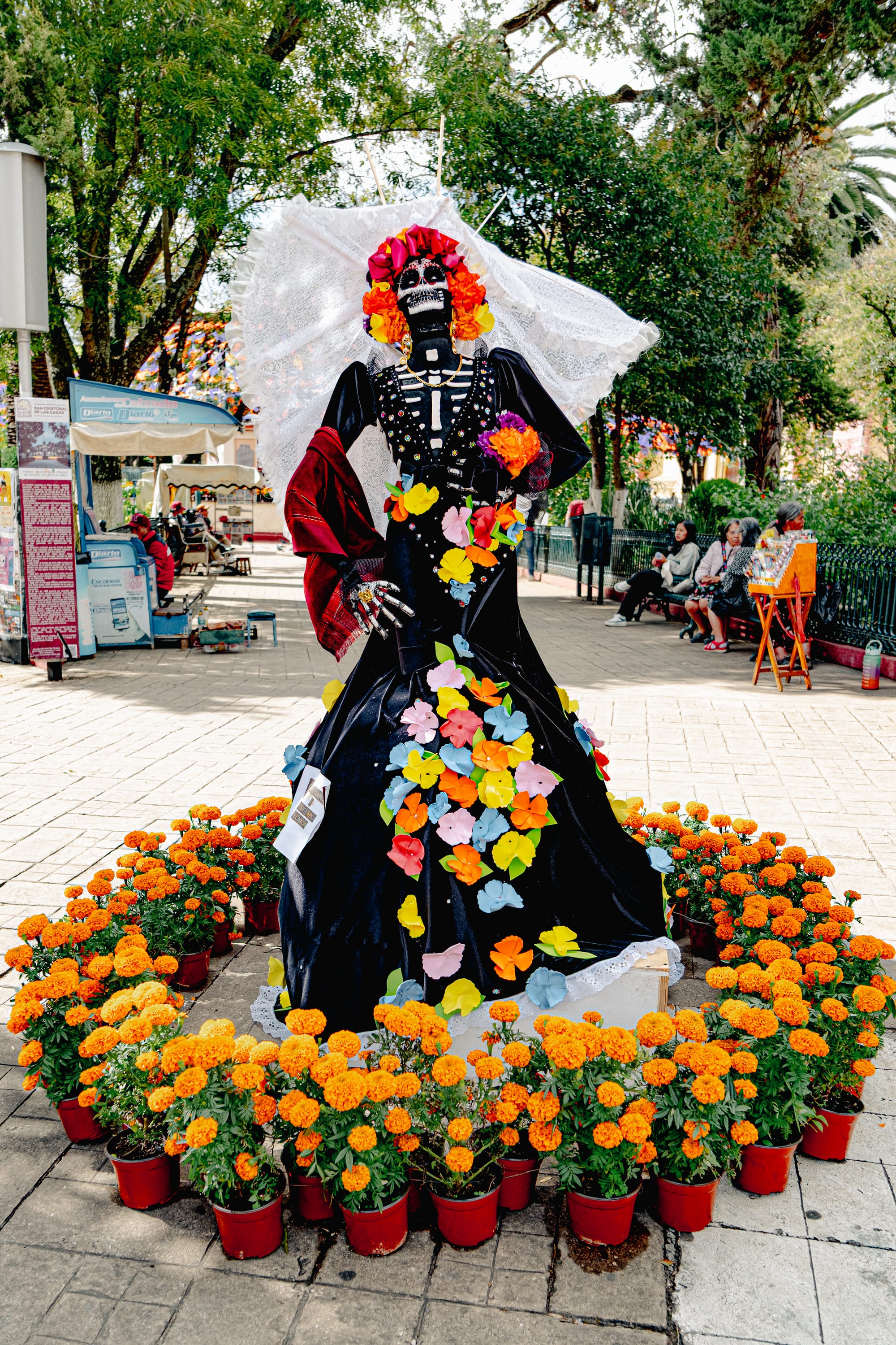 Floral Catrinas standing watch in the main plaza