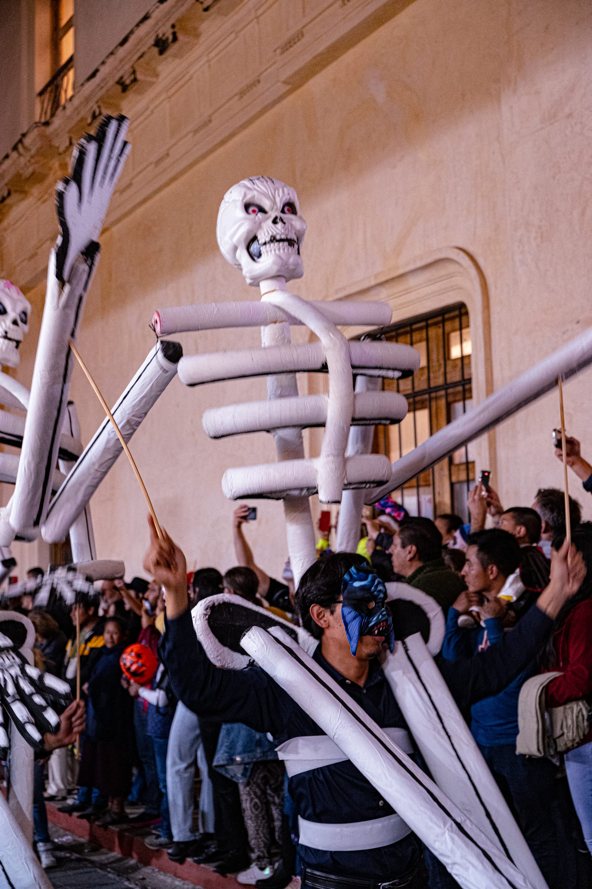 Ornate skeletons filling the plaza during Día de Muertos