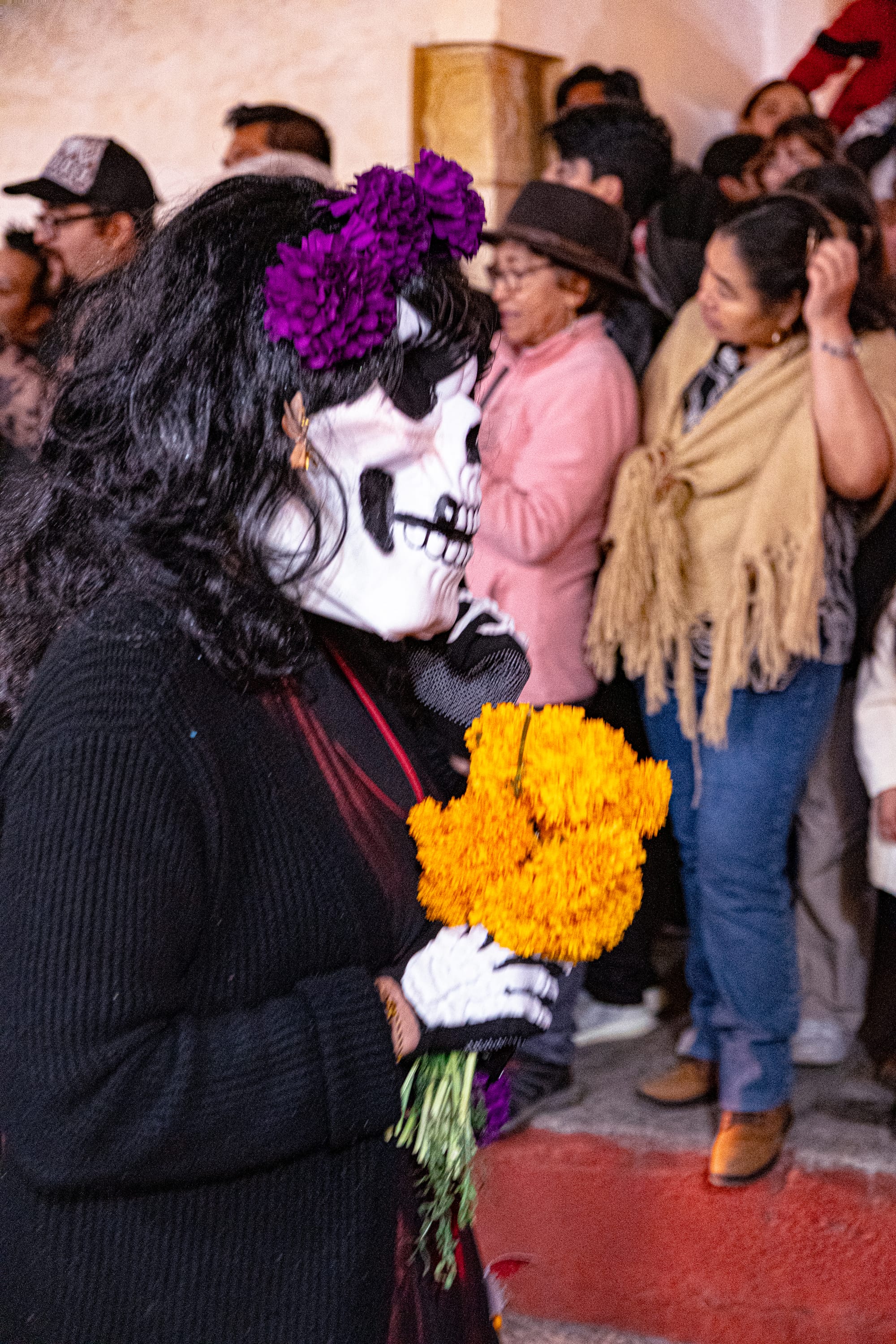 Marigolds were everywhere. Lining streets. Framing doorways. Spilling out of buckets, stalls, and temporary altars. Their scent hung in the air—sweet, earthy, and unmistakable. In Mexican tradition, marigolds are believed to guide spirits back to the world of the living. Here, they seemed to guide the living too, slowing footsteps, drawing attention downward and inward.