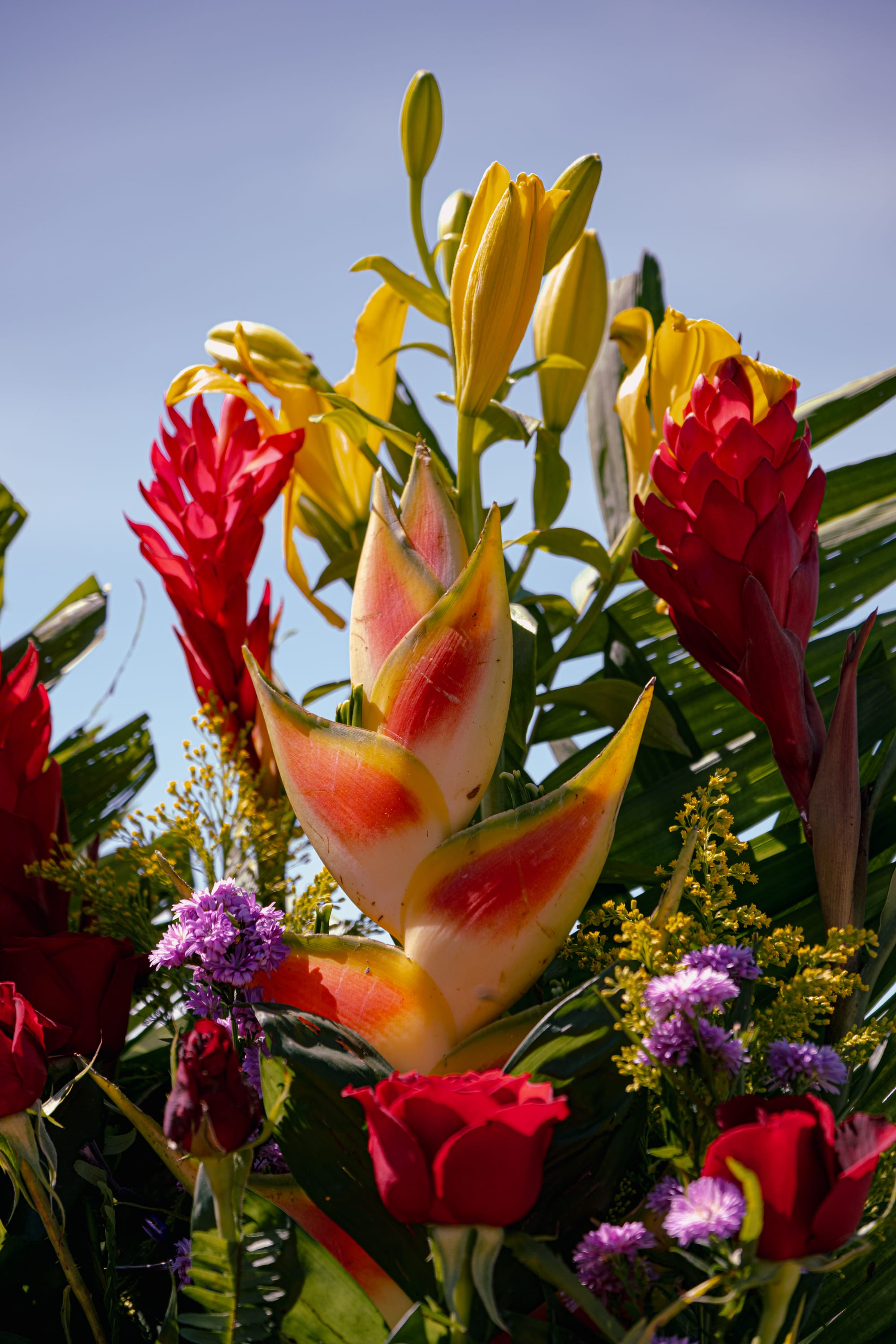 Flowers across the cemetery hillside