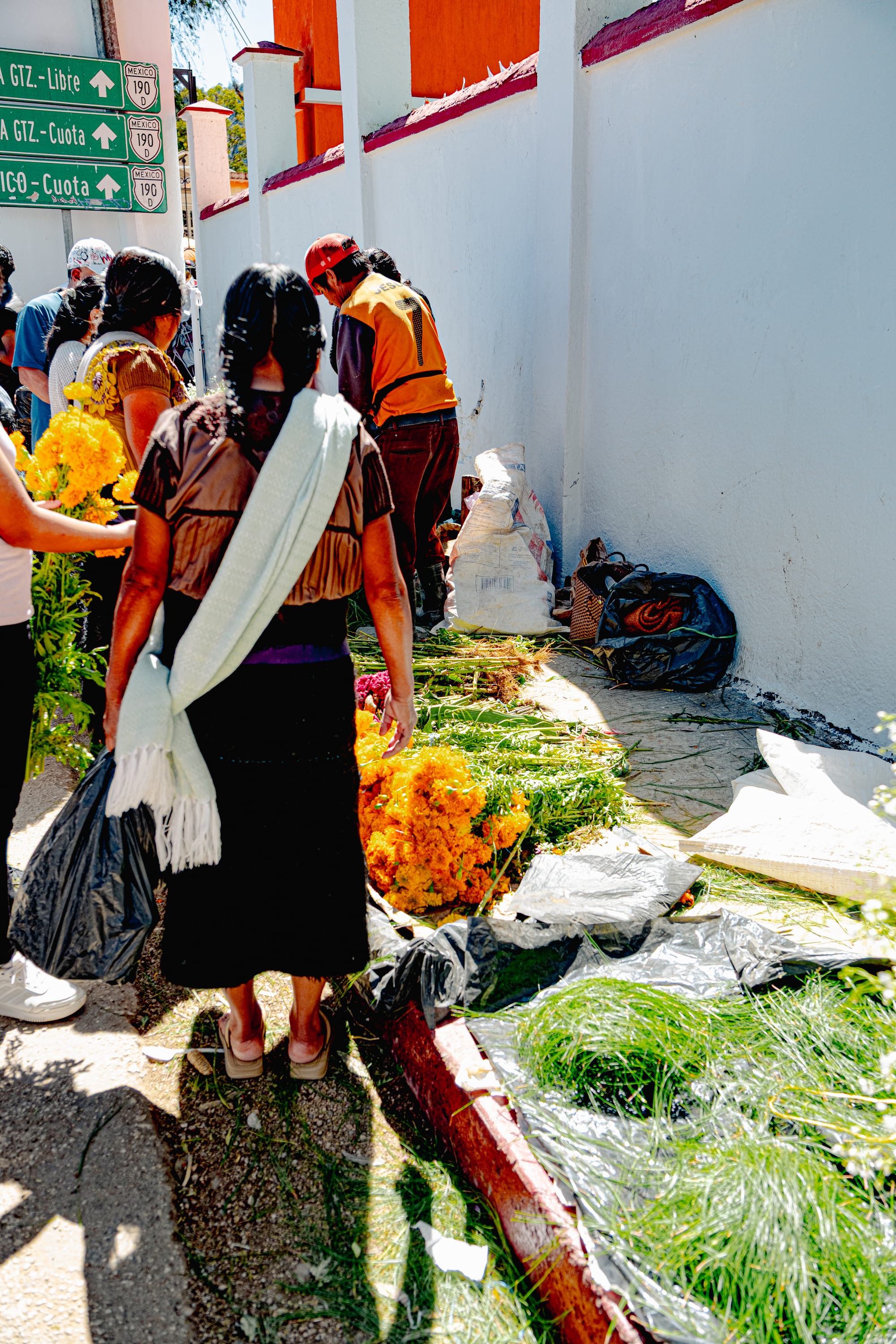 Inside the cemetery, nearly every grave was carefully decorated with pine needles, marigolds, fruit, candles, and offerings. Families gathered, talked, laughed, ate, and stayed for hours. It felt less like a place of mourning and more like a true celebration of the dead, held openly and without restraint.