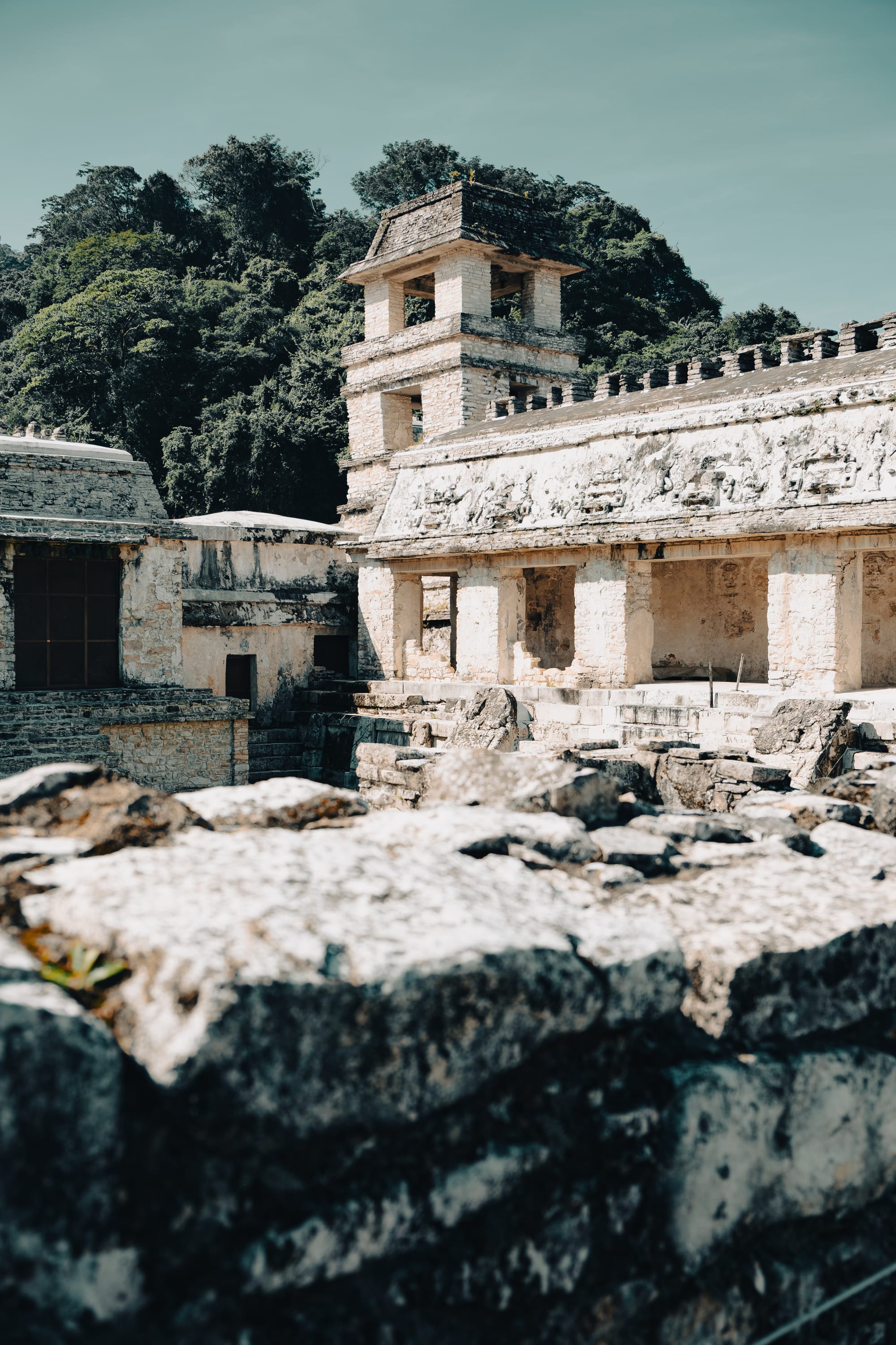 From certain angles, the Palace tower rises above the trees, offering one of the clearest reminders that Palenque was once not just a spiritual site, but a functioning city—administrative, residential, and political.