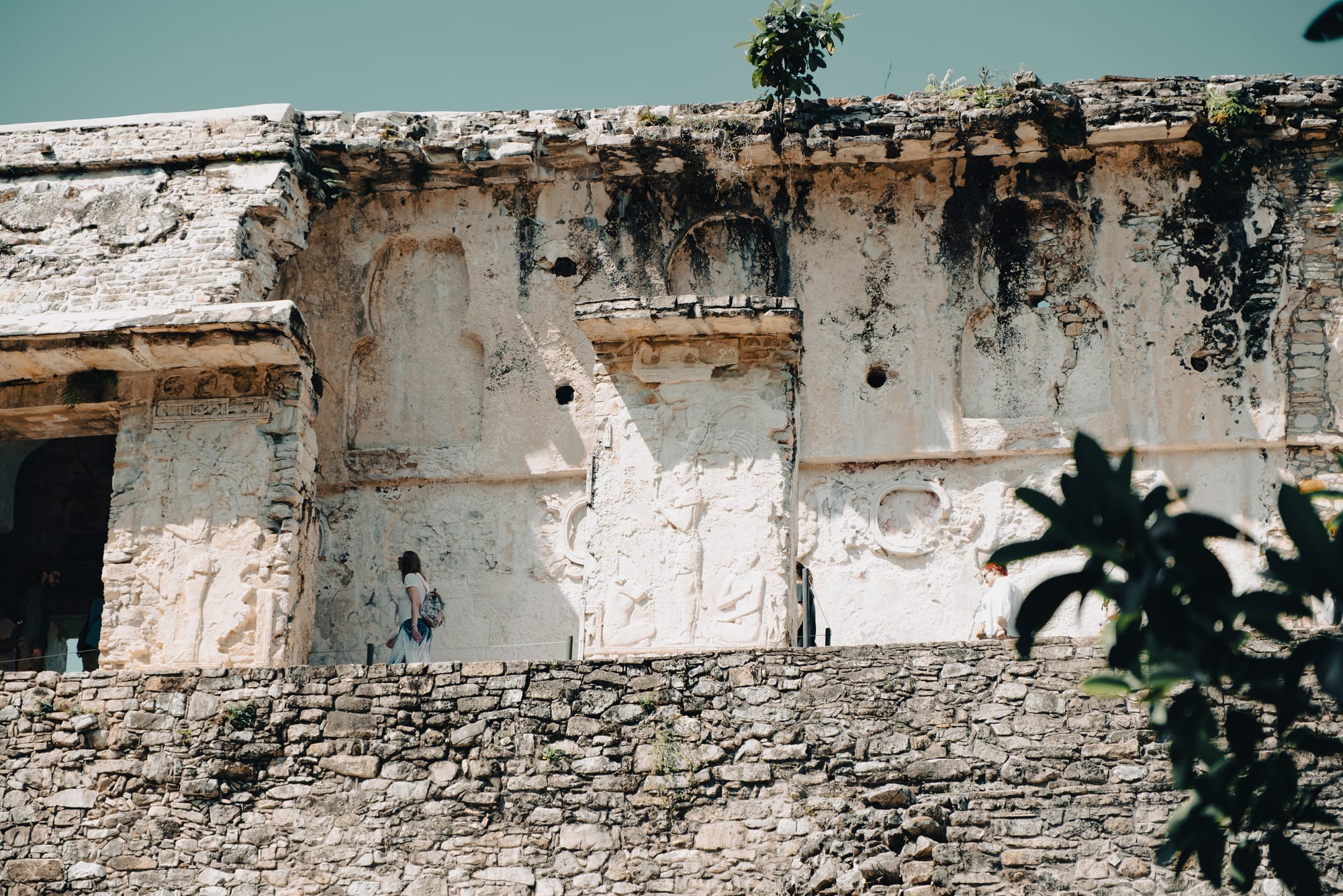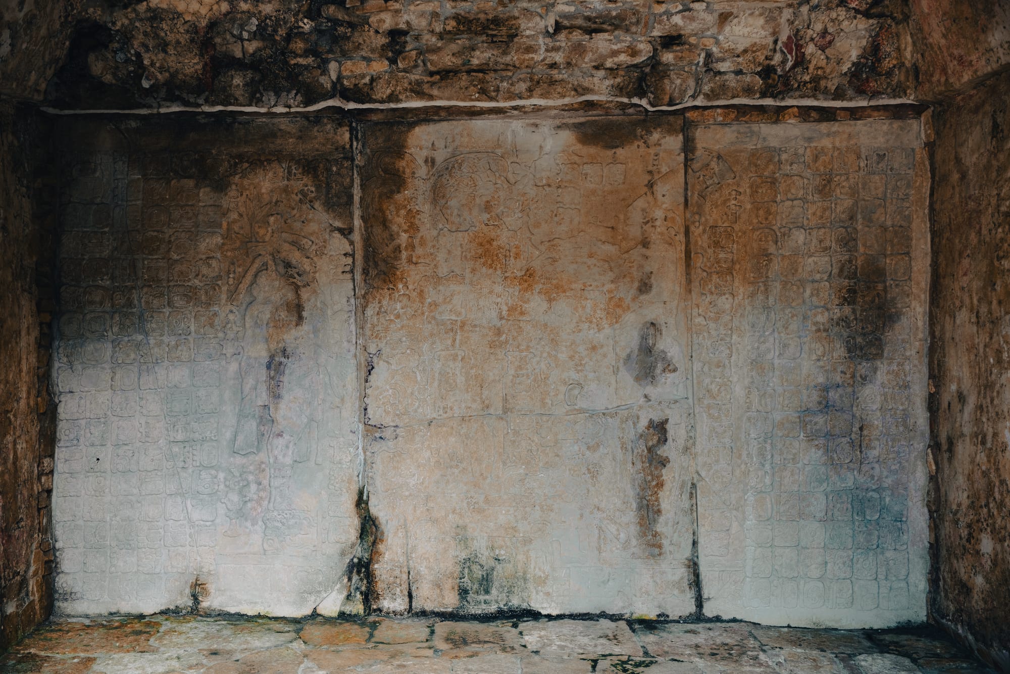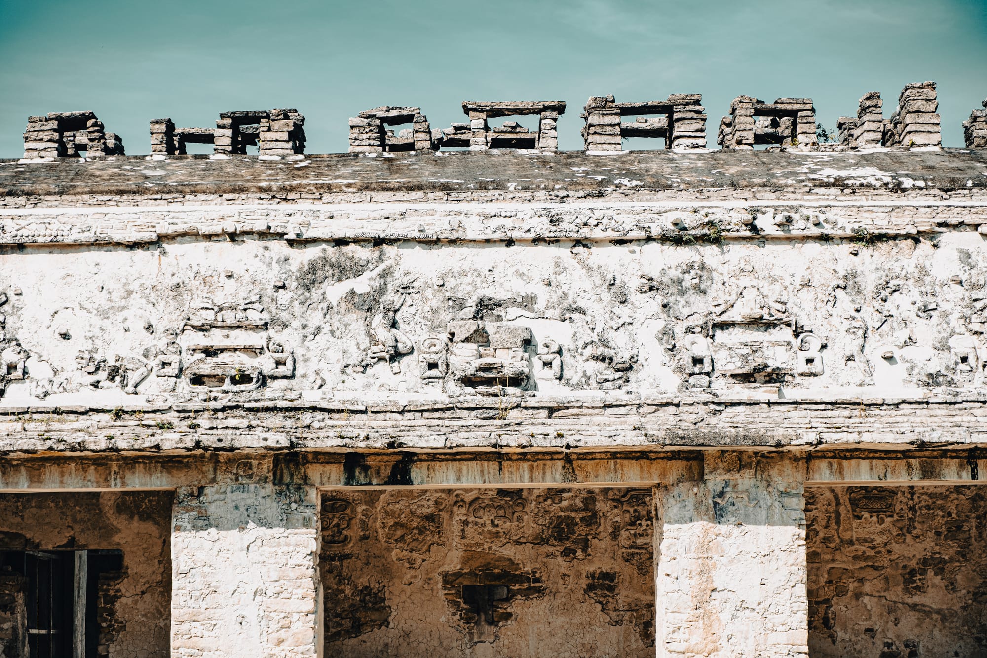 Carved glyphs, worn reliefs, and layered stonework reveal how Palenque’s history is written directly into its walls