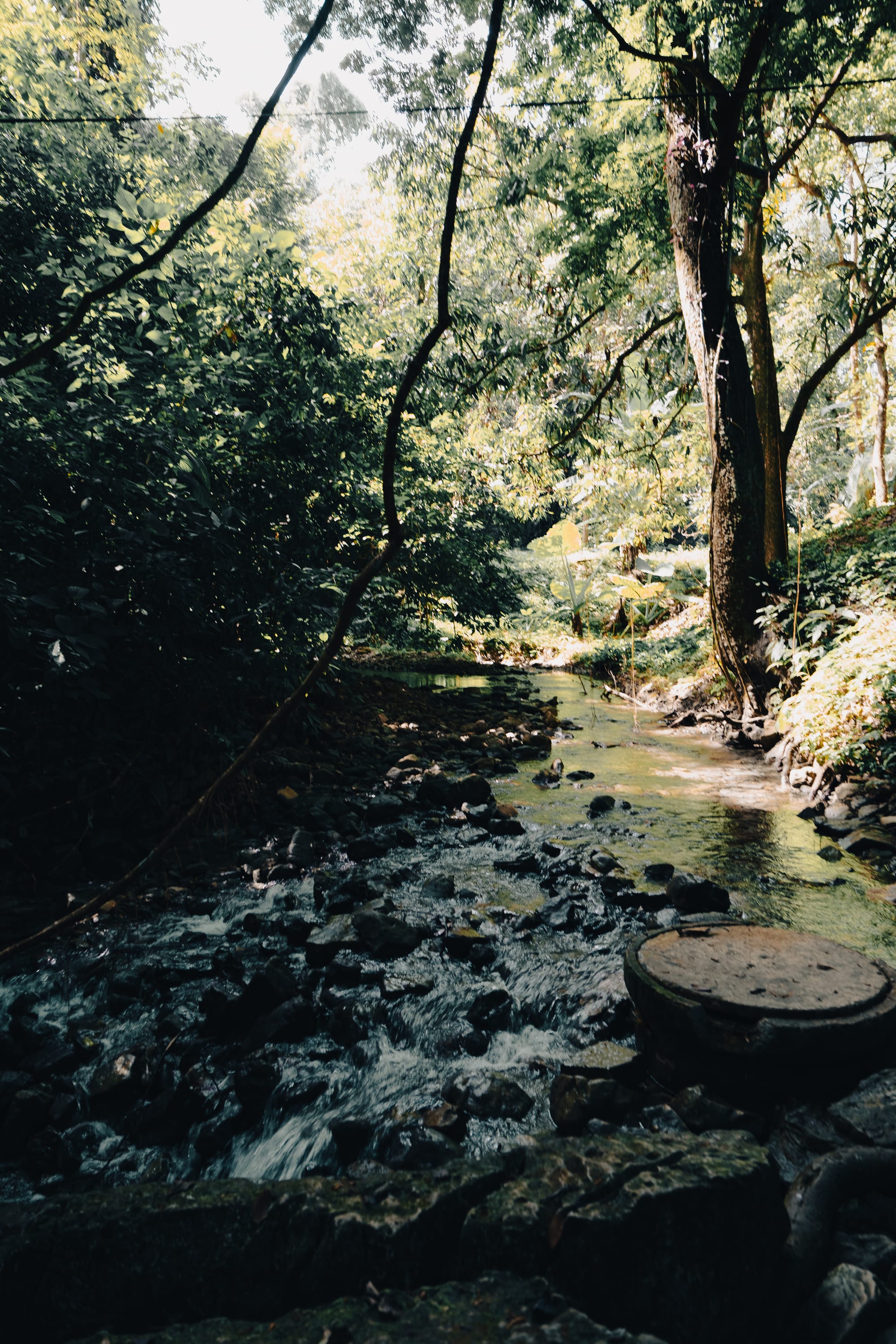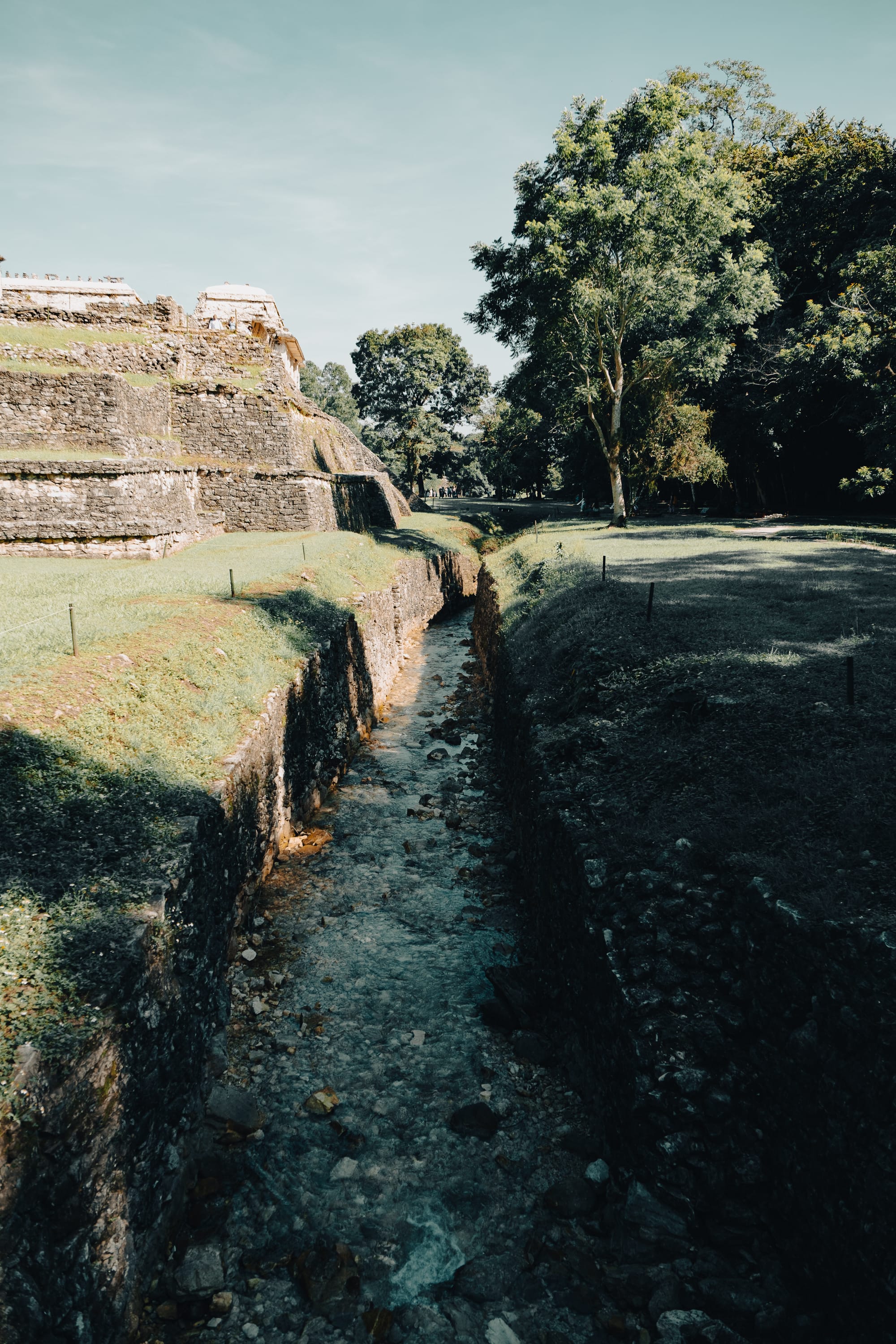 Water channels and canopy overhead quietly shape the rhythm of the site