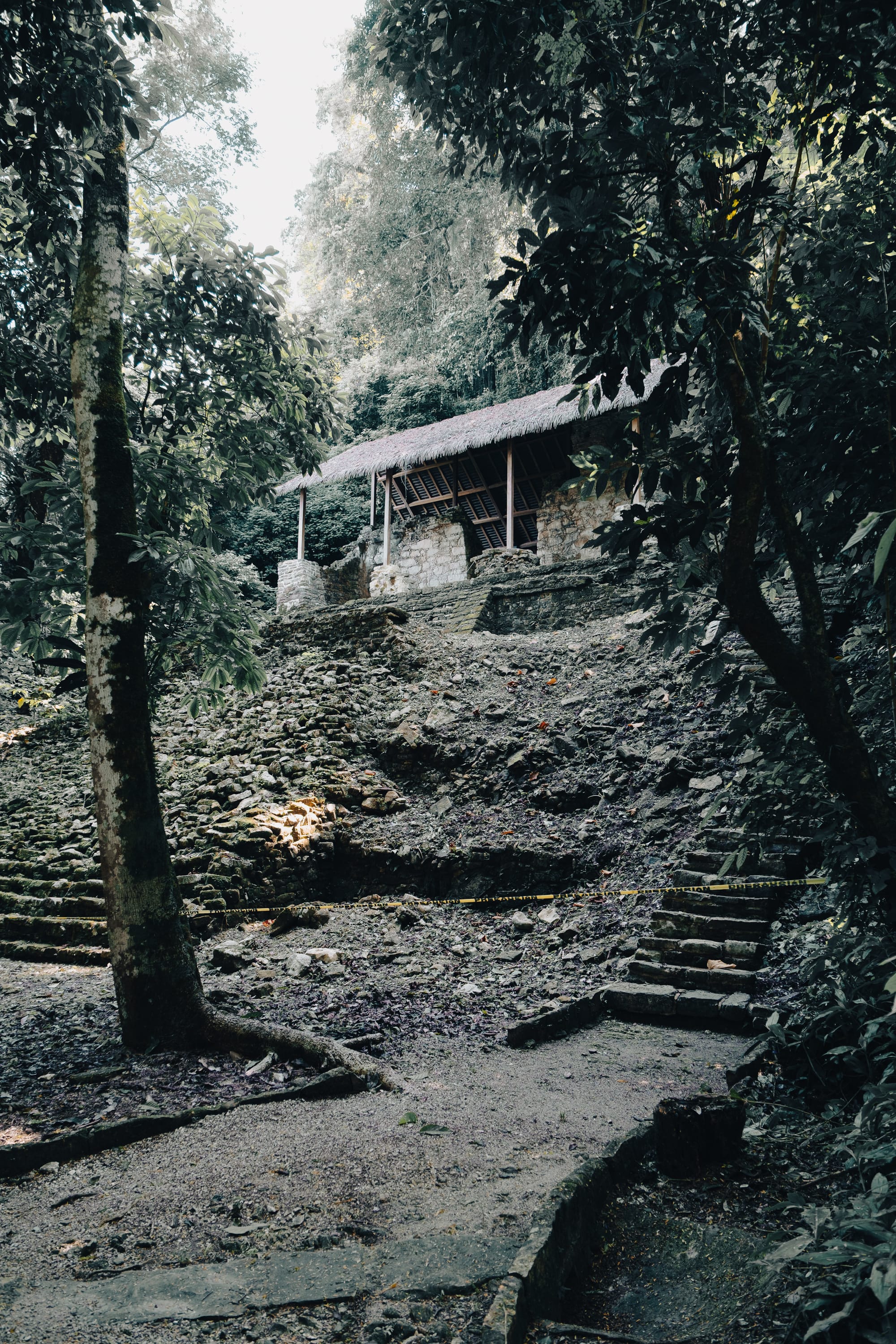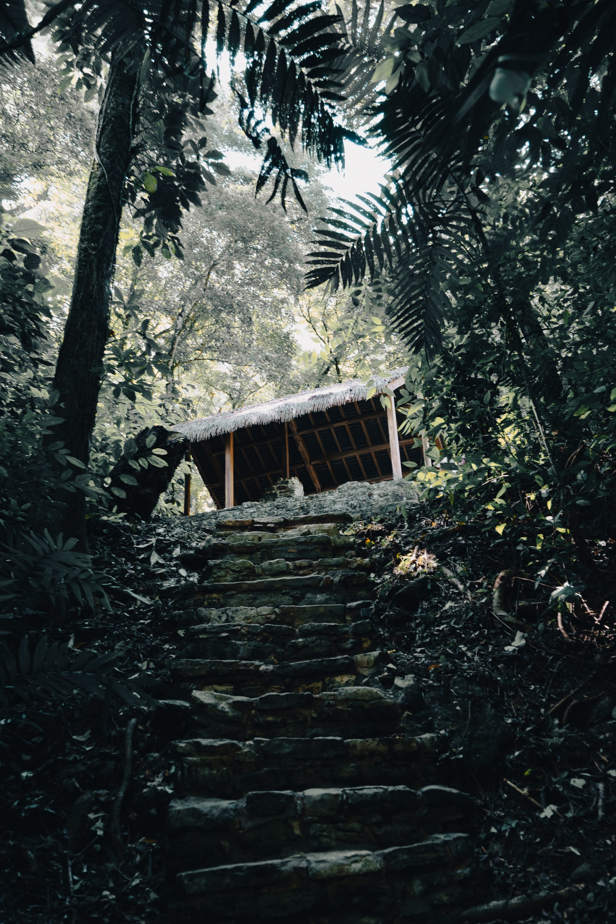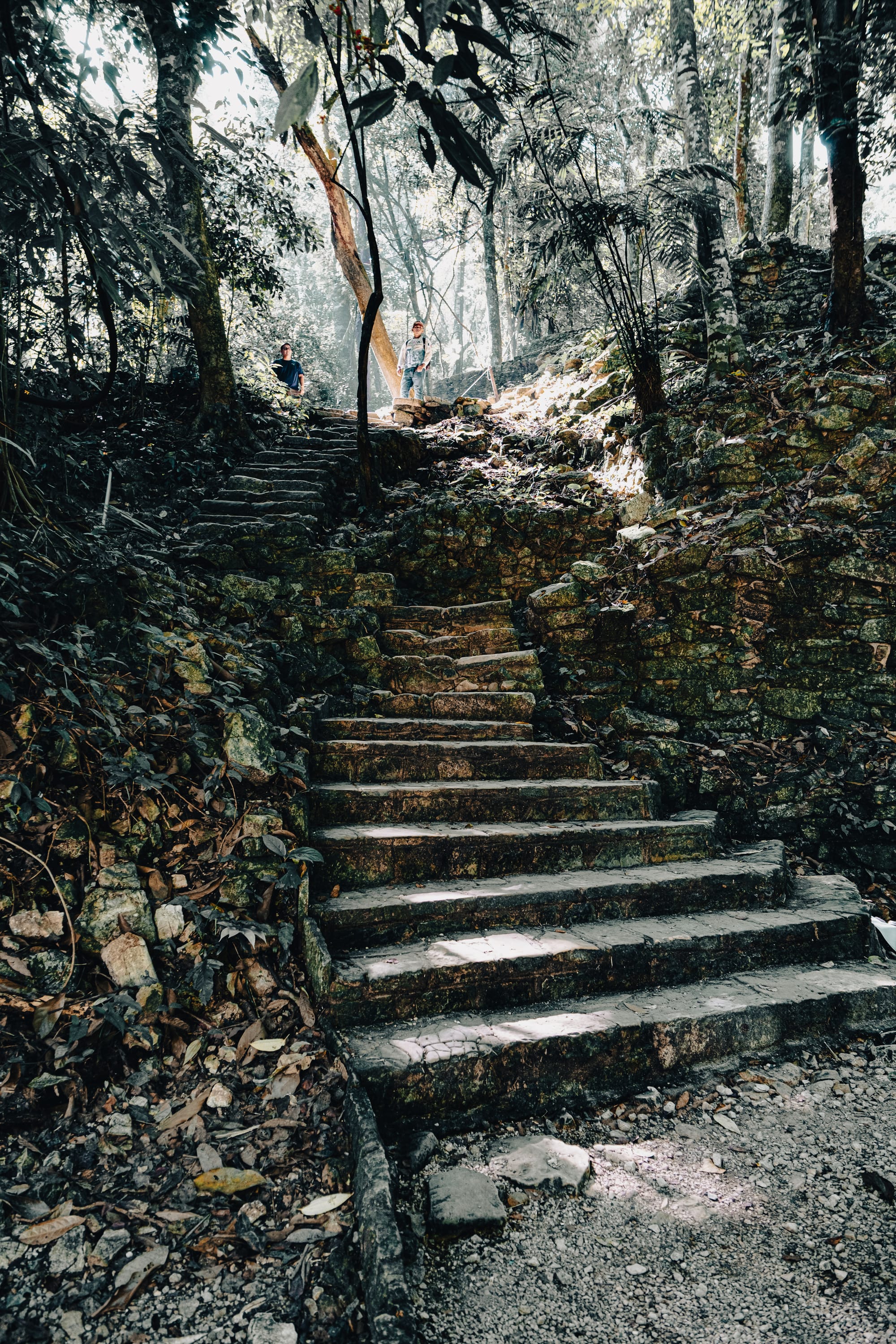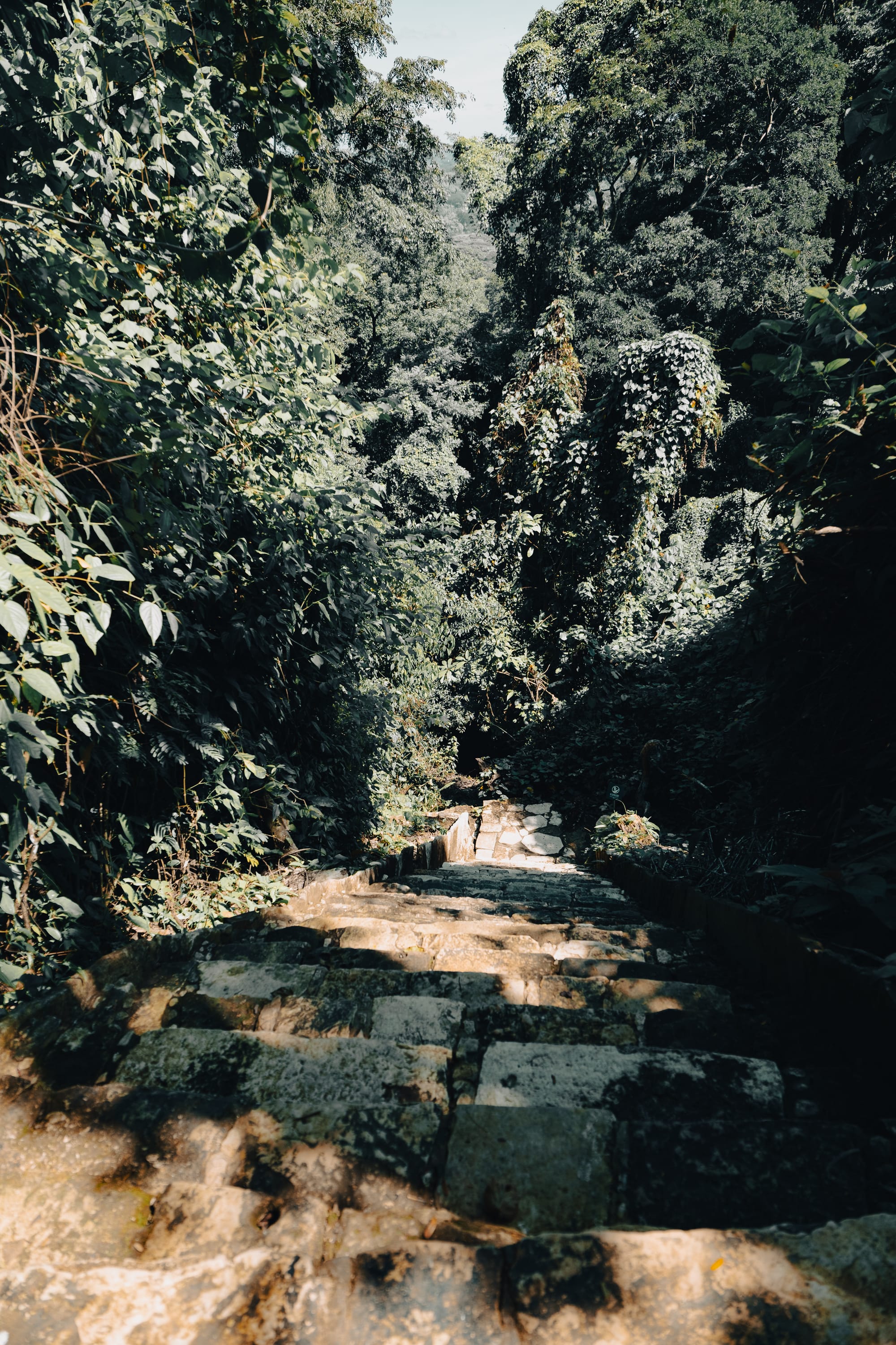 Stone steps climb gradually into the jungle