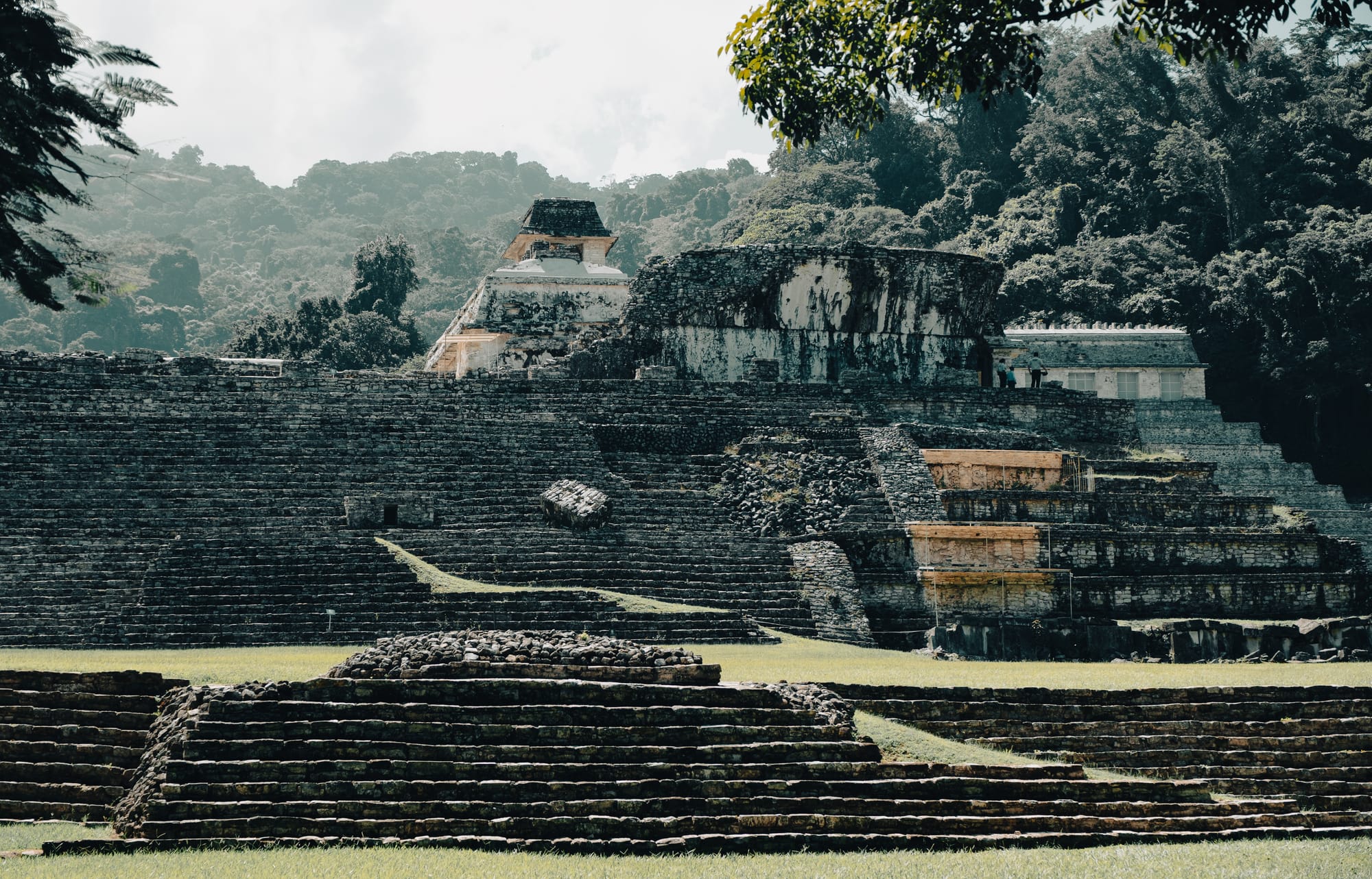 This group includes the Temple of the Cross, Temple of the Foliated Cross, and Temple of the Sun. Together, they form a ceremonial complex dedicated to Palenque’s ruling dynasty and Maya cosmology.