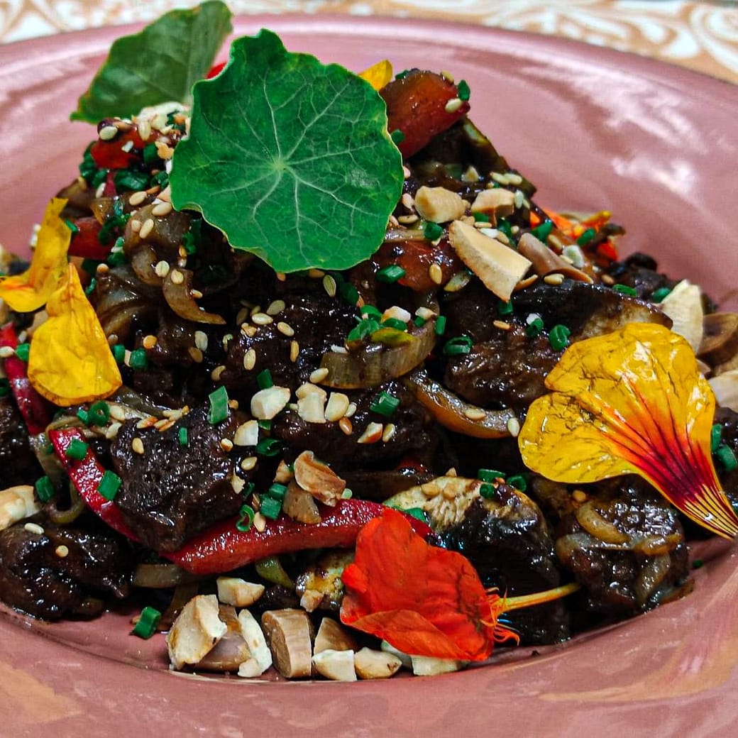 Rotas is a fully vegetarian restaurant with many vegan options, often flower-adorned. We've heard great things about their zucchini cannelloni from a fellow vegan on the island. Photo credit, as sadly we were not able to make it there ourselves.