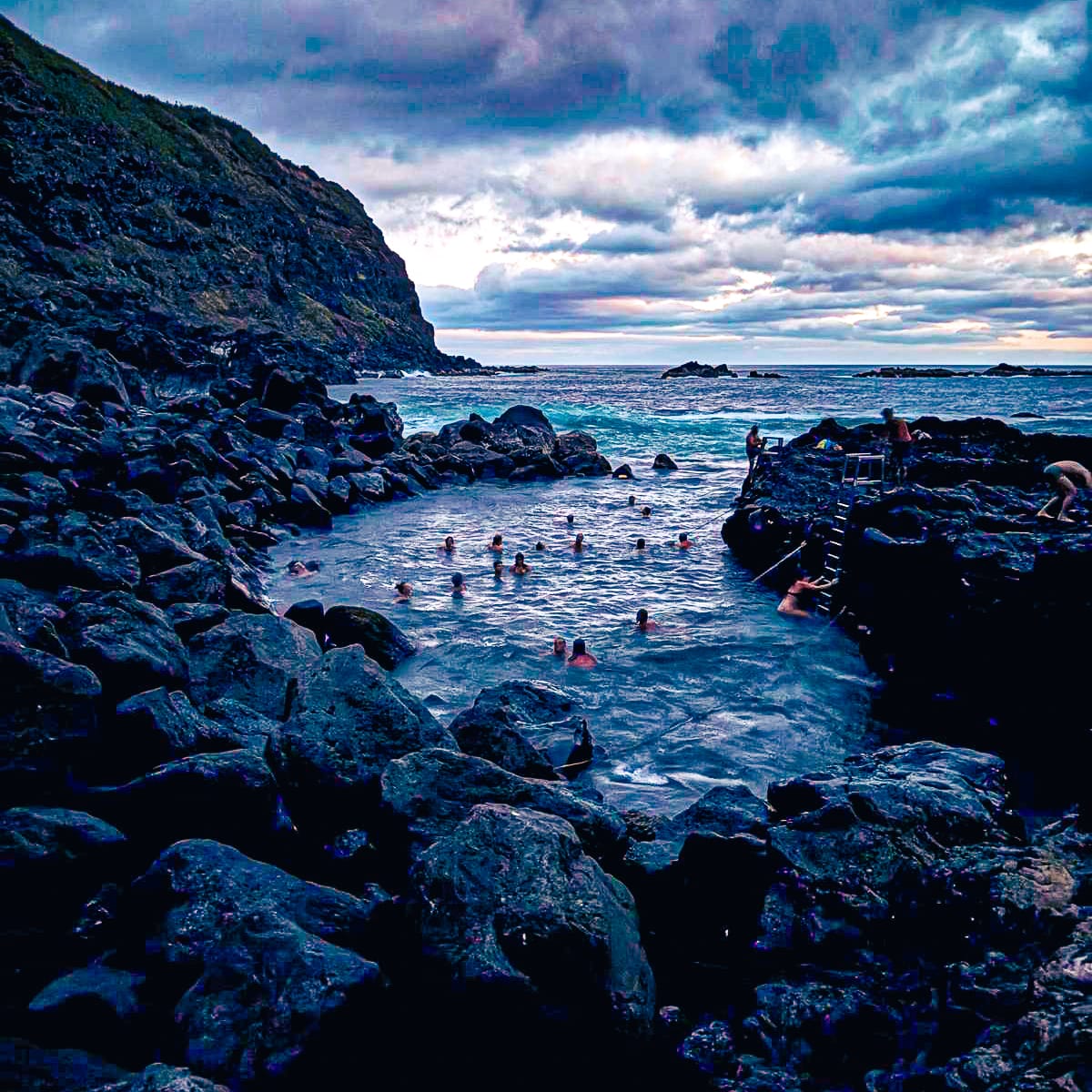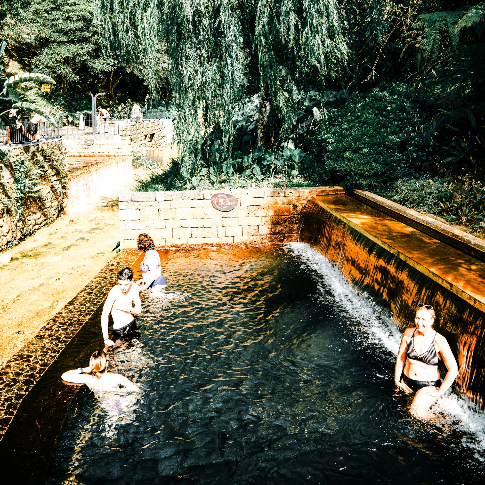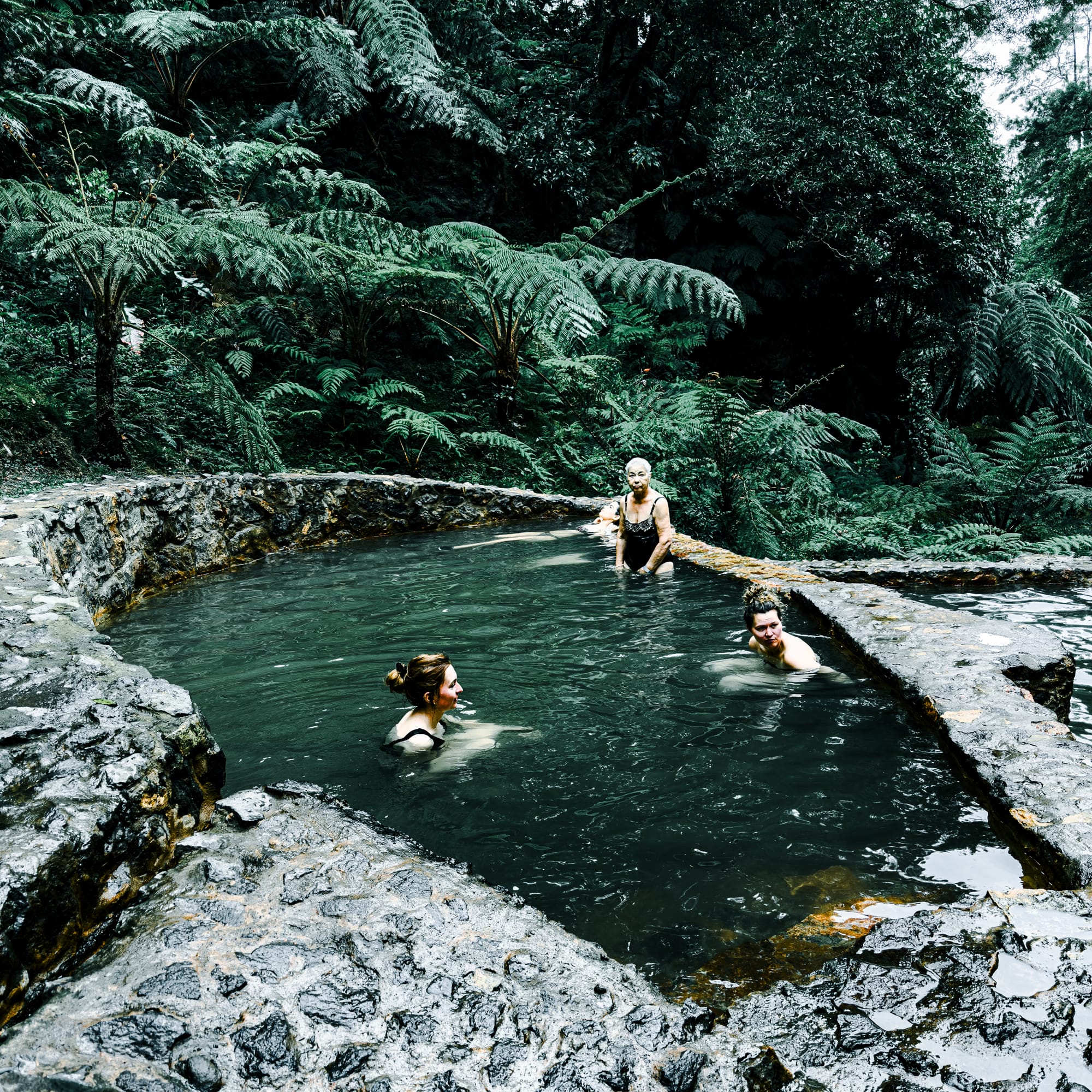 Poça da Dona Beija is a popular thermal spring in Furnas with warm, mineral-rich pools. Ideal for a slow soak, especially in the evening. There's red clay sediment in the stones forming the pools which you can use as a face mask. Read our post.