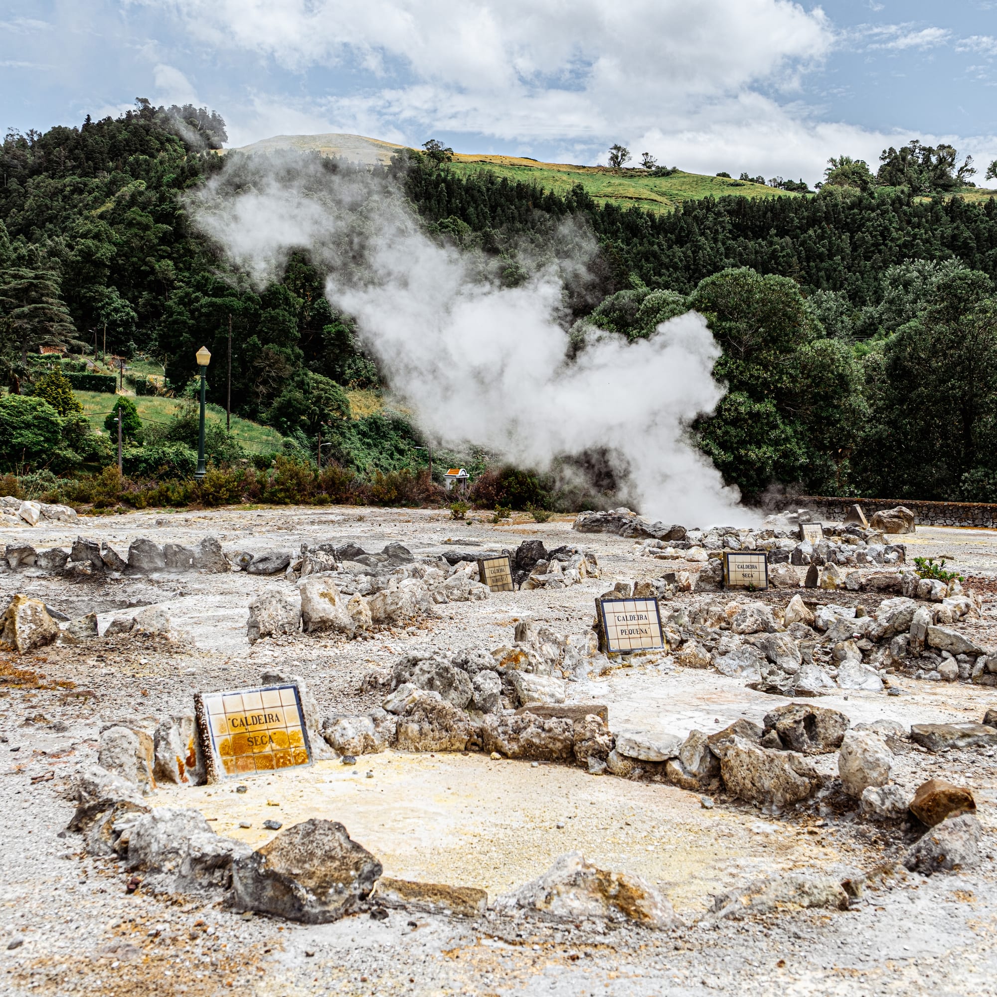The caldeiras in Furnas are geothermal vents where steam rises from bubbling, sulfur-rich pools. You can walk among them on easy paths, watch locals cook cozido underground, and see the raw volcanic energy that shapes the town. Read our post.