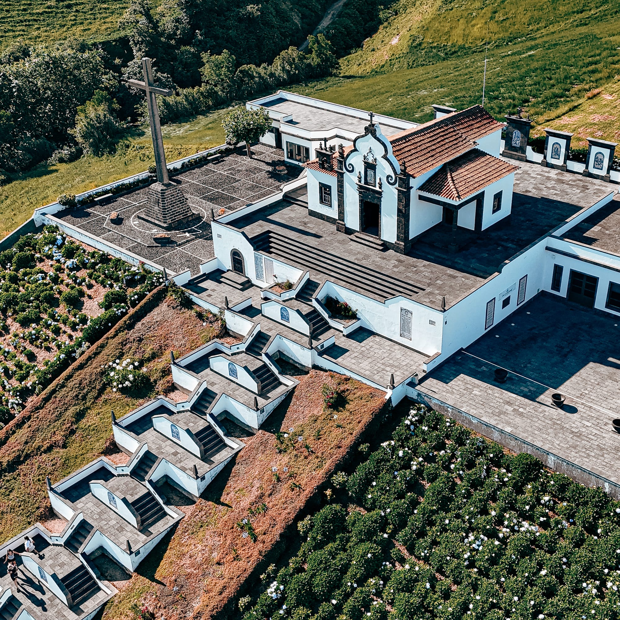 Santuário de Nossa Senhora da Paz is an 18th century chapel on a hilltop overlooking Vila Franca do Campo. It's unique architecture made this our favorite chapel on the island. The views from the top are stunning. Read our post.