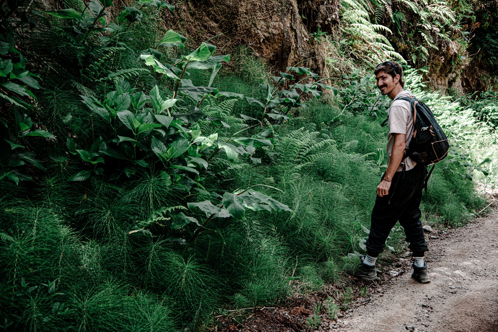There are stretches where the trail is flanked by fields of ginger lily and stone pines, and others where tree ferns unfurl in spirals and hearts.