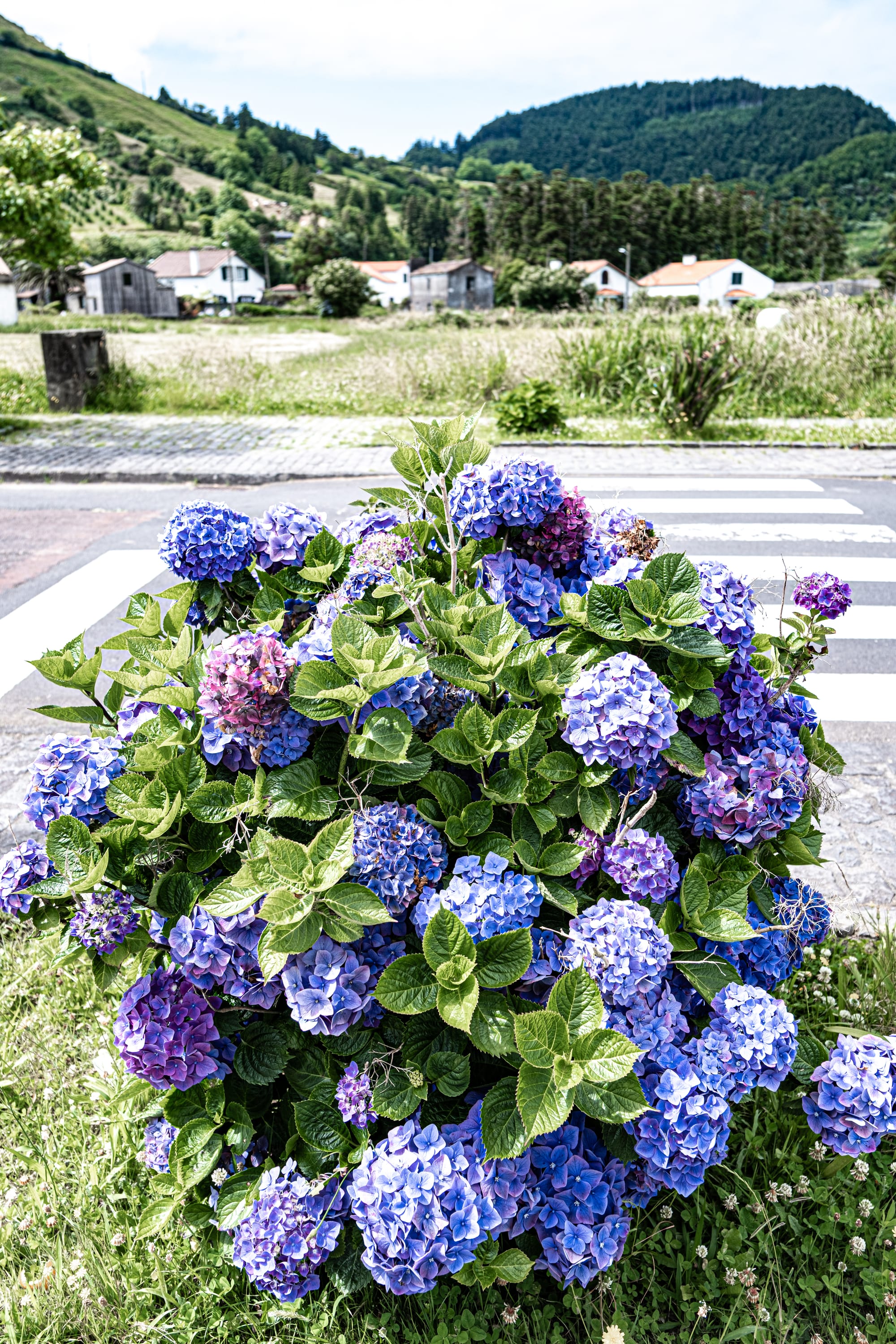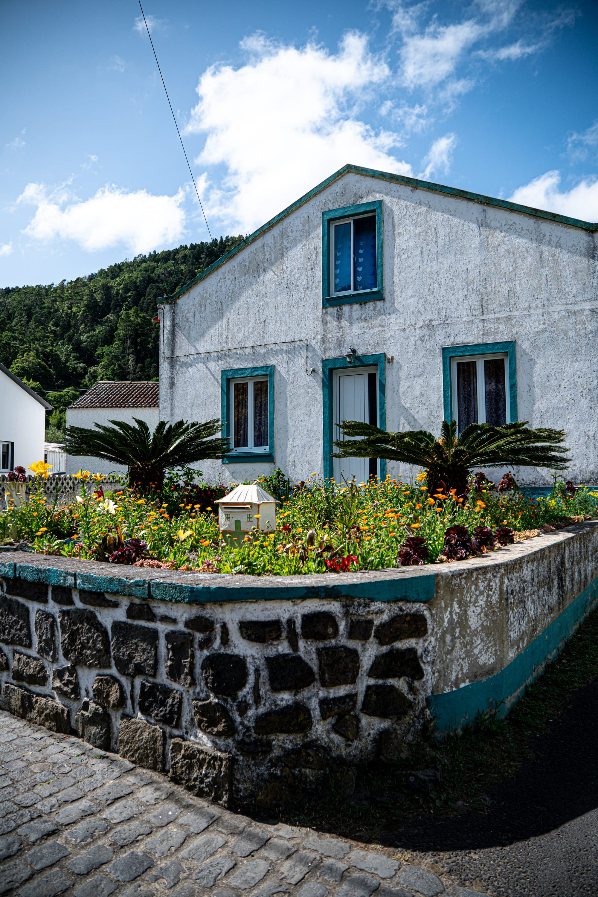 Sete Cidades is quiet. It feels protected—sheltered by the caldeira walls and held close by the lakes. The town itself is small, mostly one- and two-story homes, some with basalt foundations and whitewashed walls, others with gardens spilling over with hibiscus, azaleas, and more hydrangeas than you thought possible.