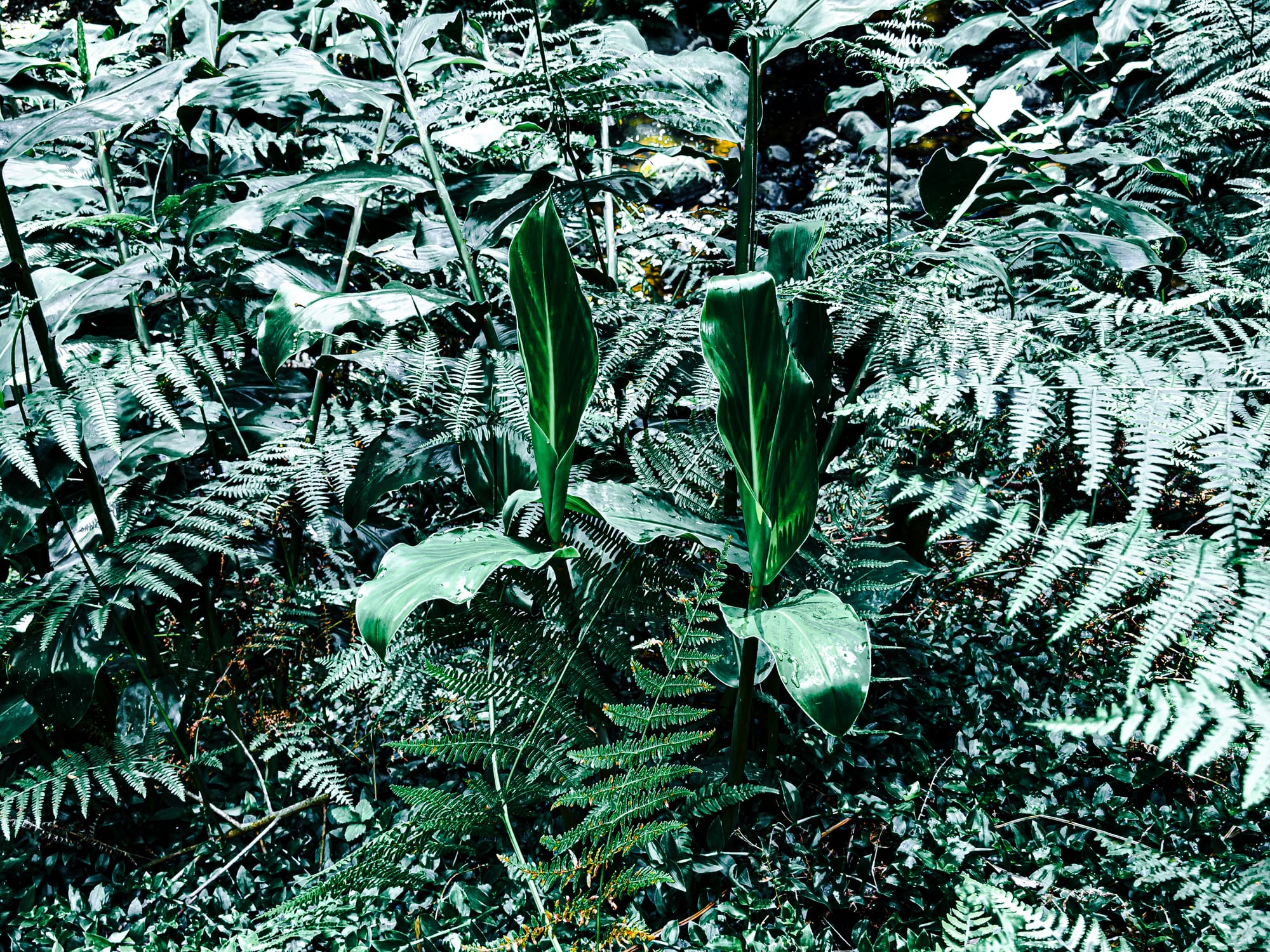In the lower elevations, the moisture brings out more delicate layers of plant life—ferns, mosses, and enormous clusters of ginger lilies.