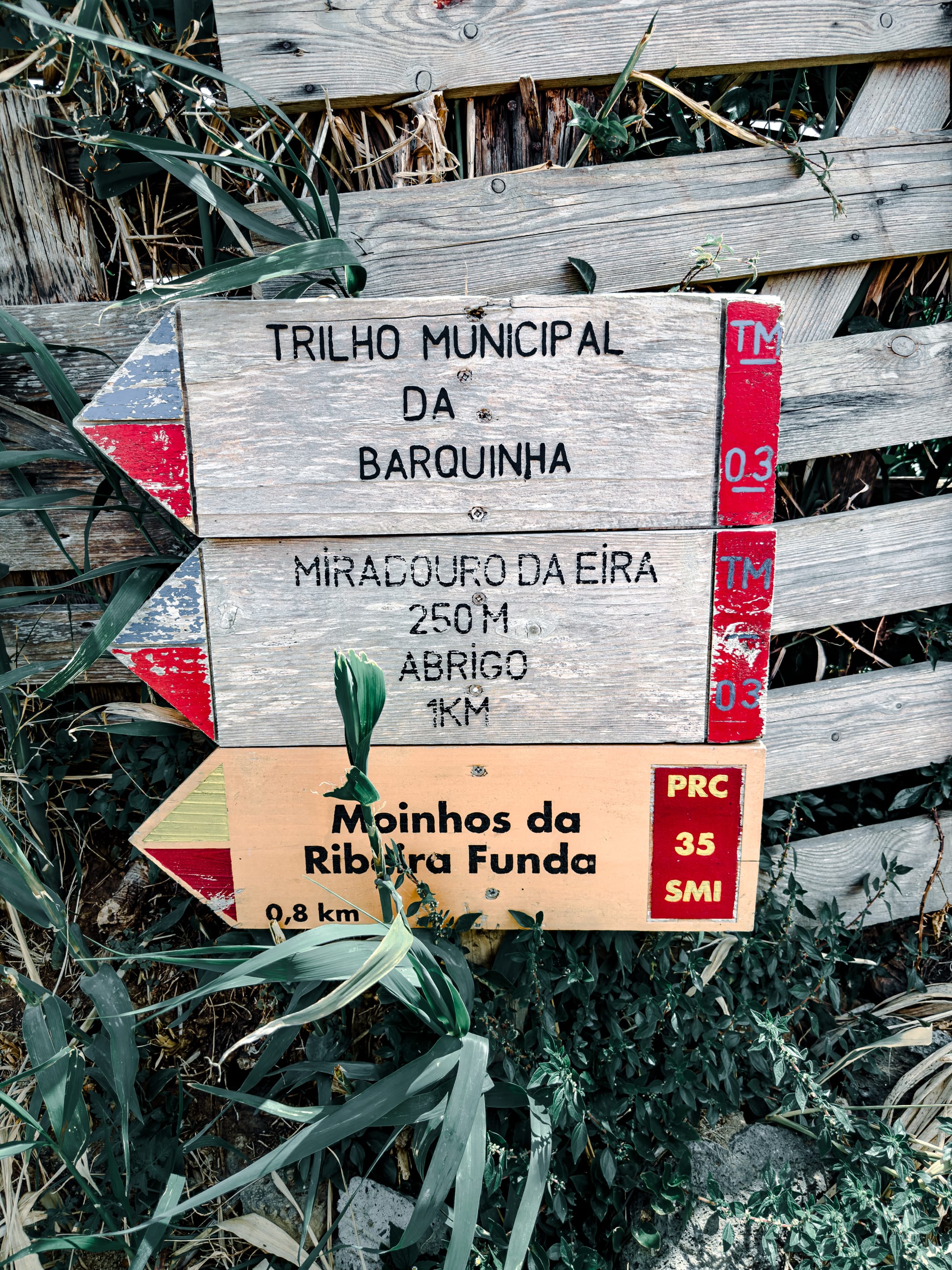 Starting the Moinhos da Ribeira Funda trail under a canopy of trees and clear signage