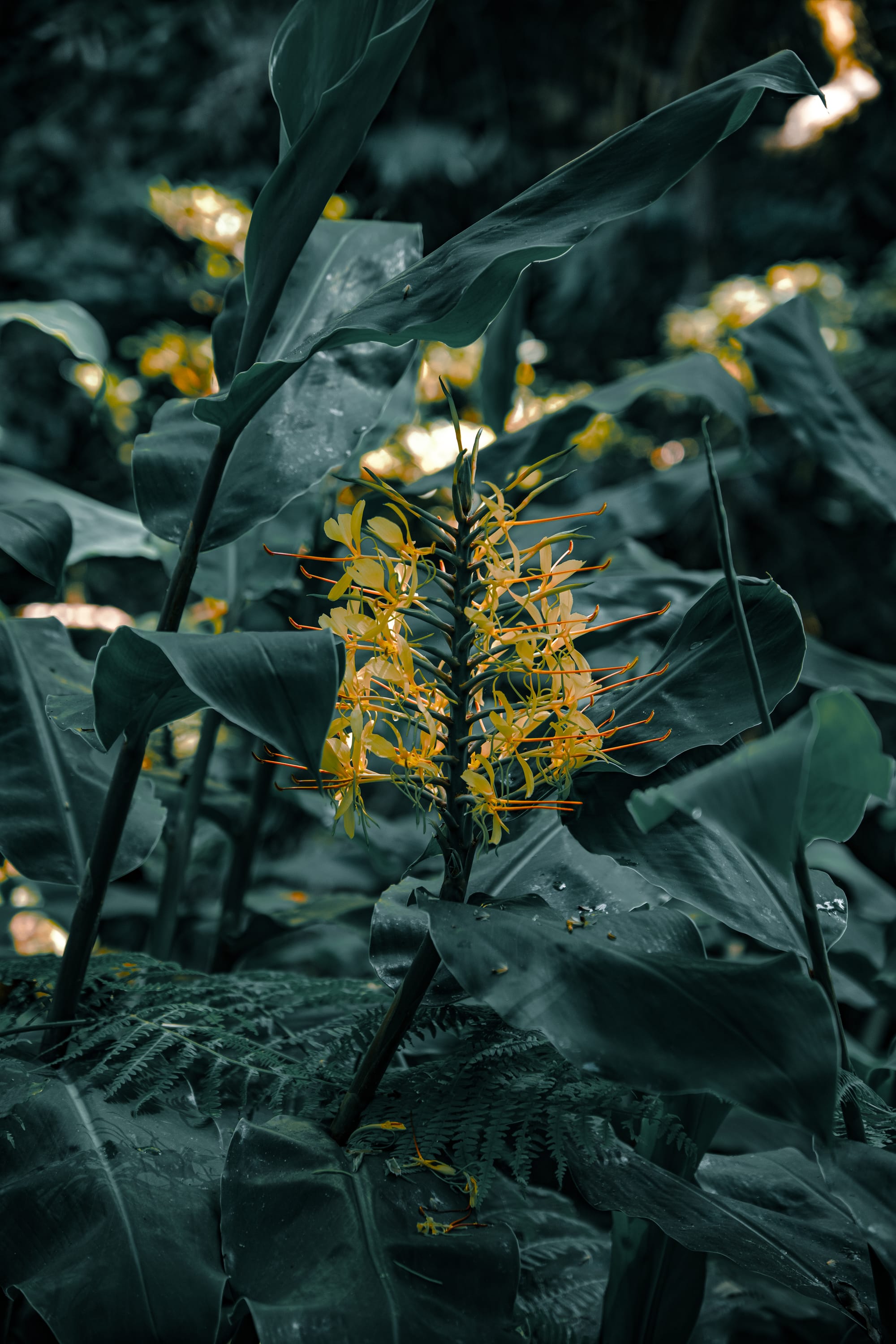 A calla lily and ginger lily bloom along the trail, two vibrant signatures of the island