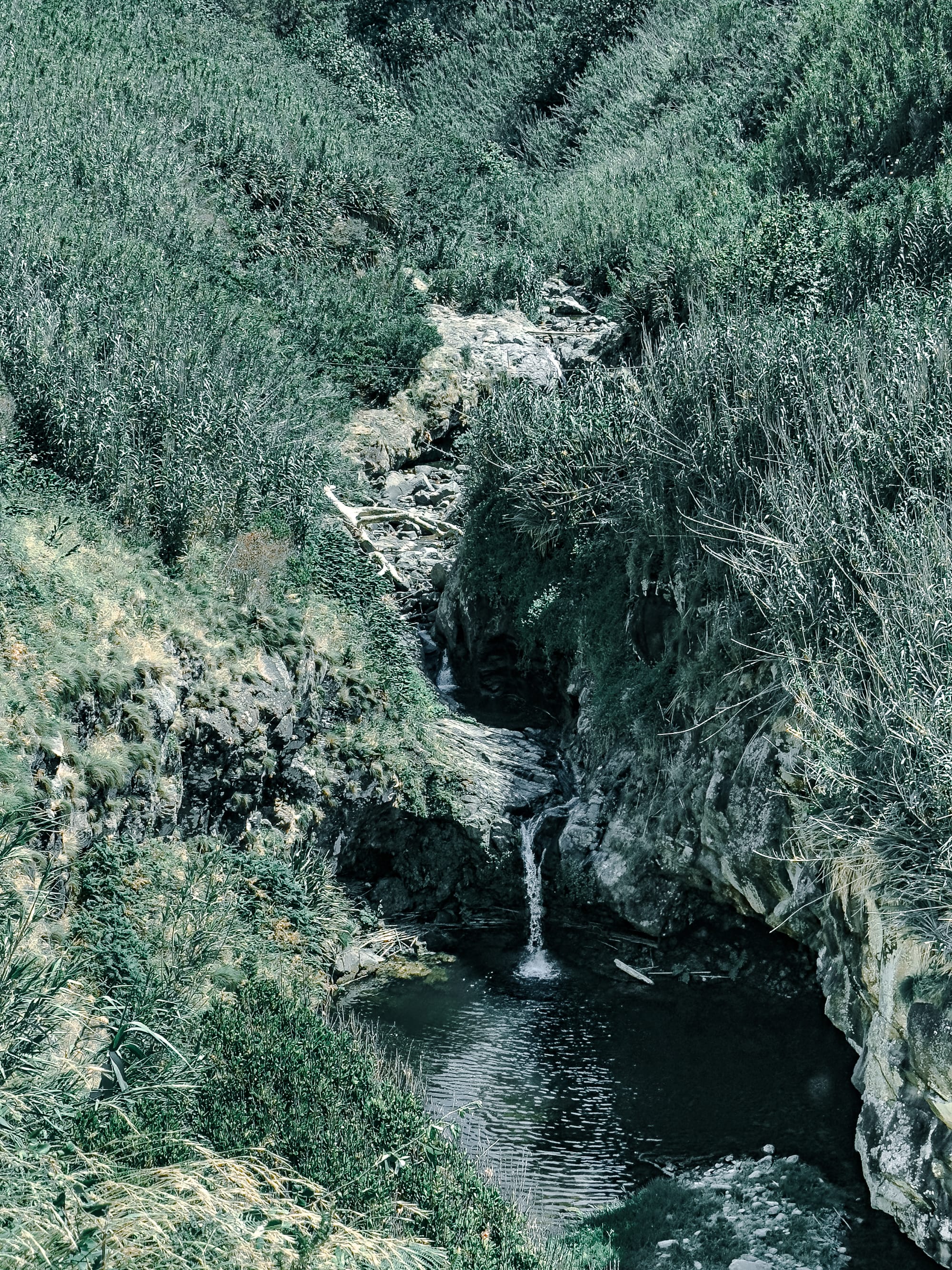 It’s a quiet spot—shaded, fern-fringed, and easy to miss if you’re moving too fast. The sound here is softer than the ocean winds ahead, and it offers a moment of stillness before the drama of the coastline unfolds. For us, it felt like a kind of prelude, a green overture to the vastness waiting beyond.