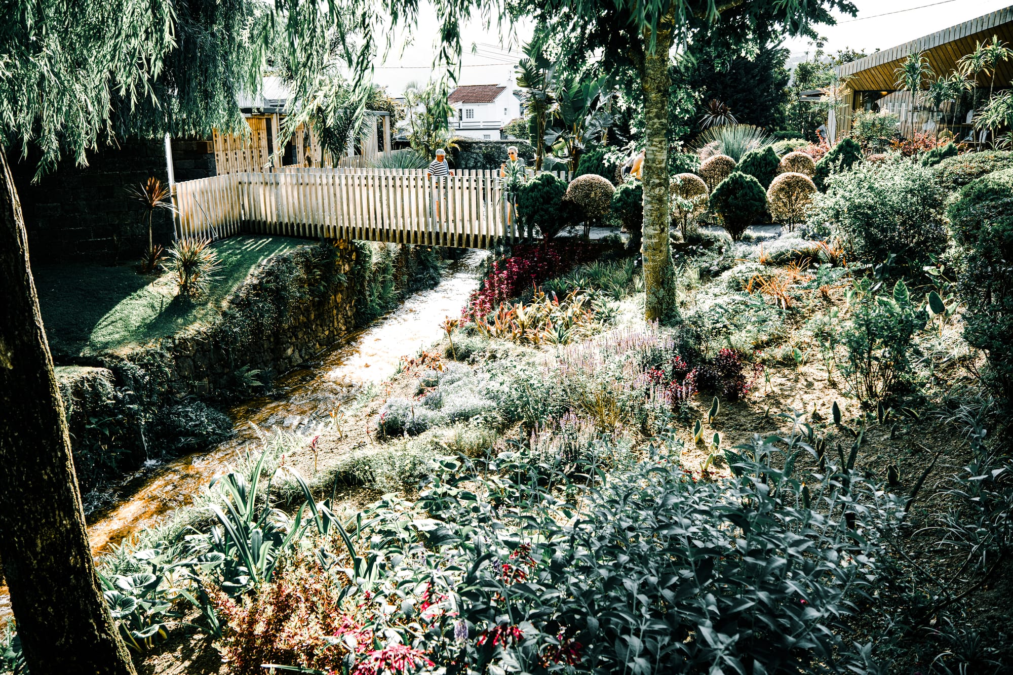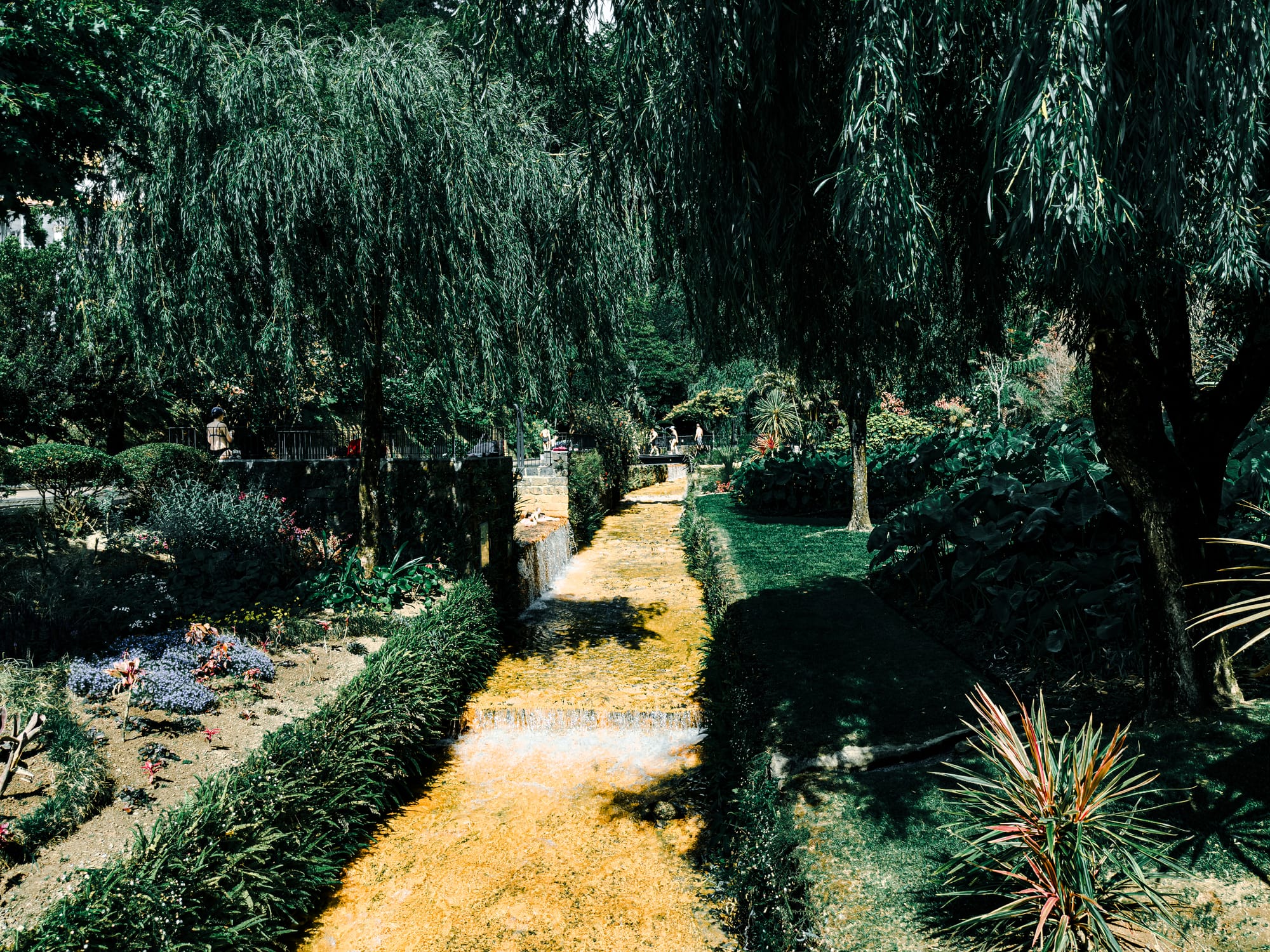 A mineral-rich stream flows through the center of Poça da Dona Beija’s gardens