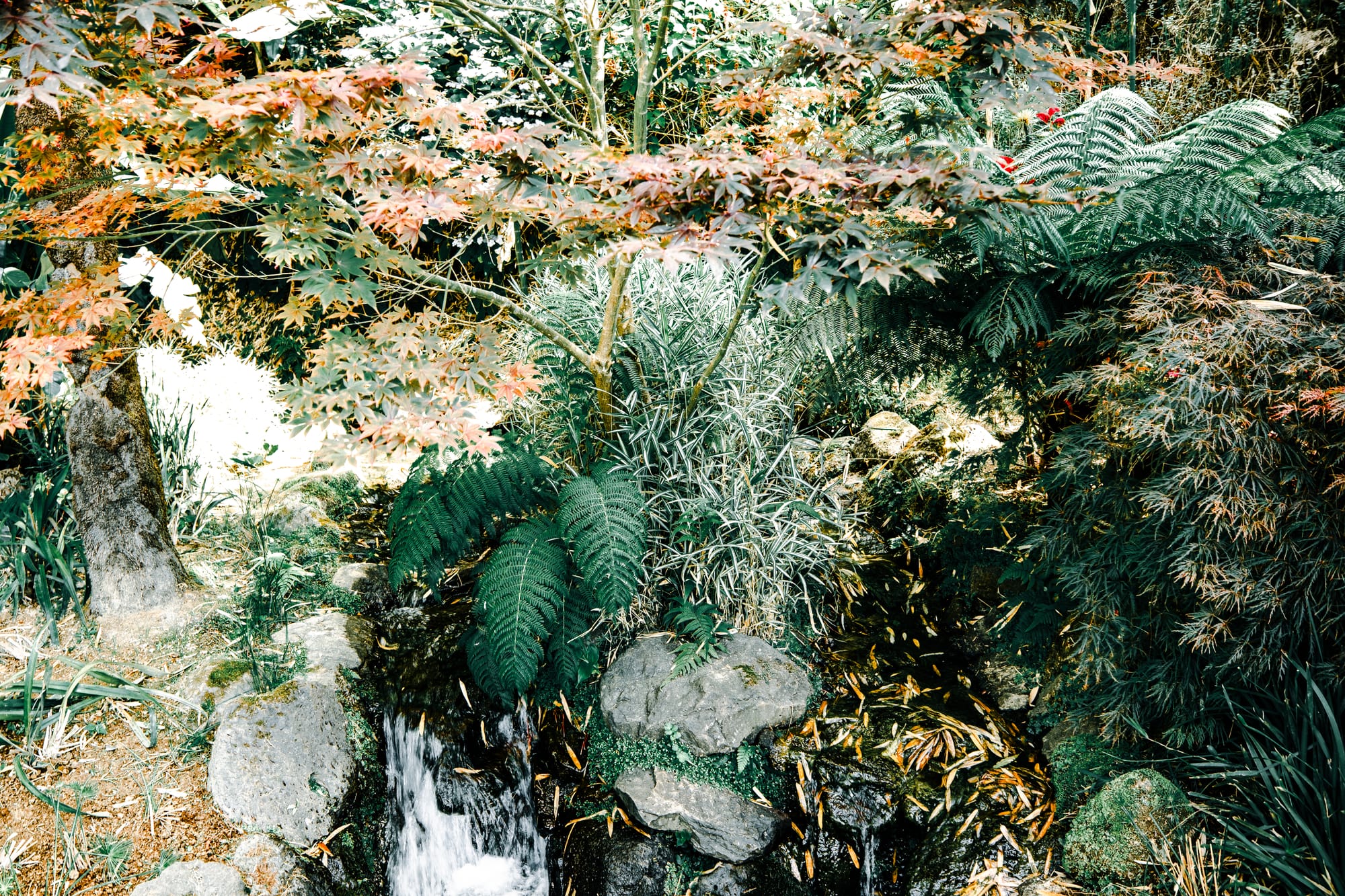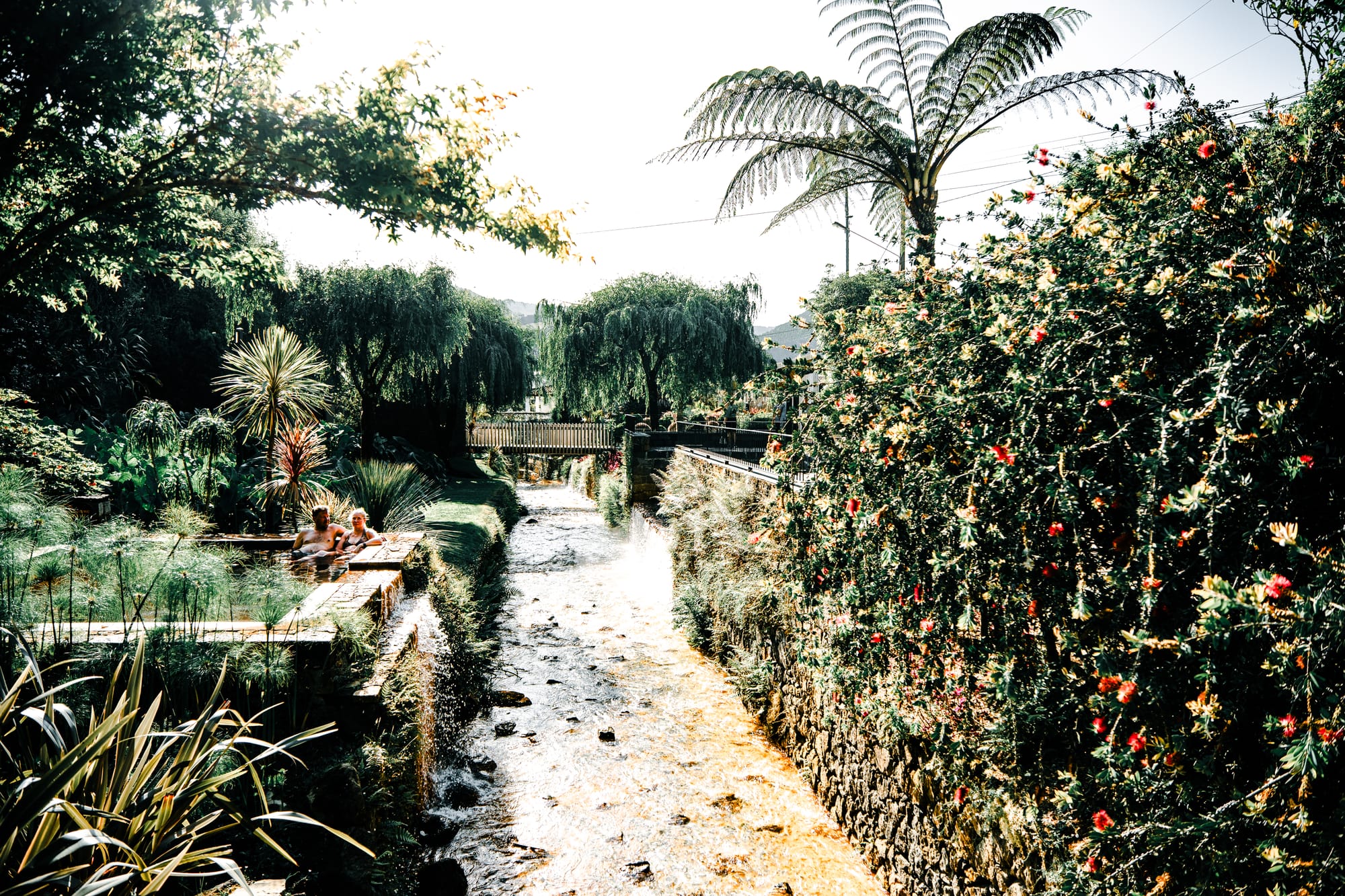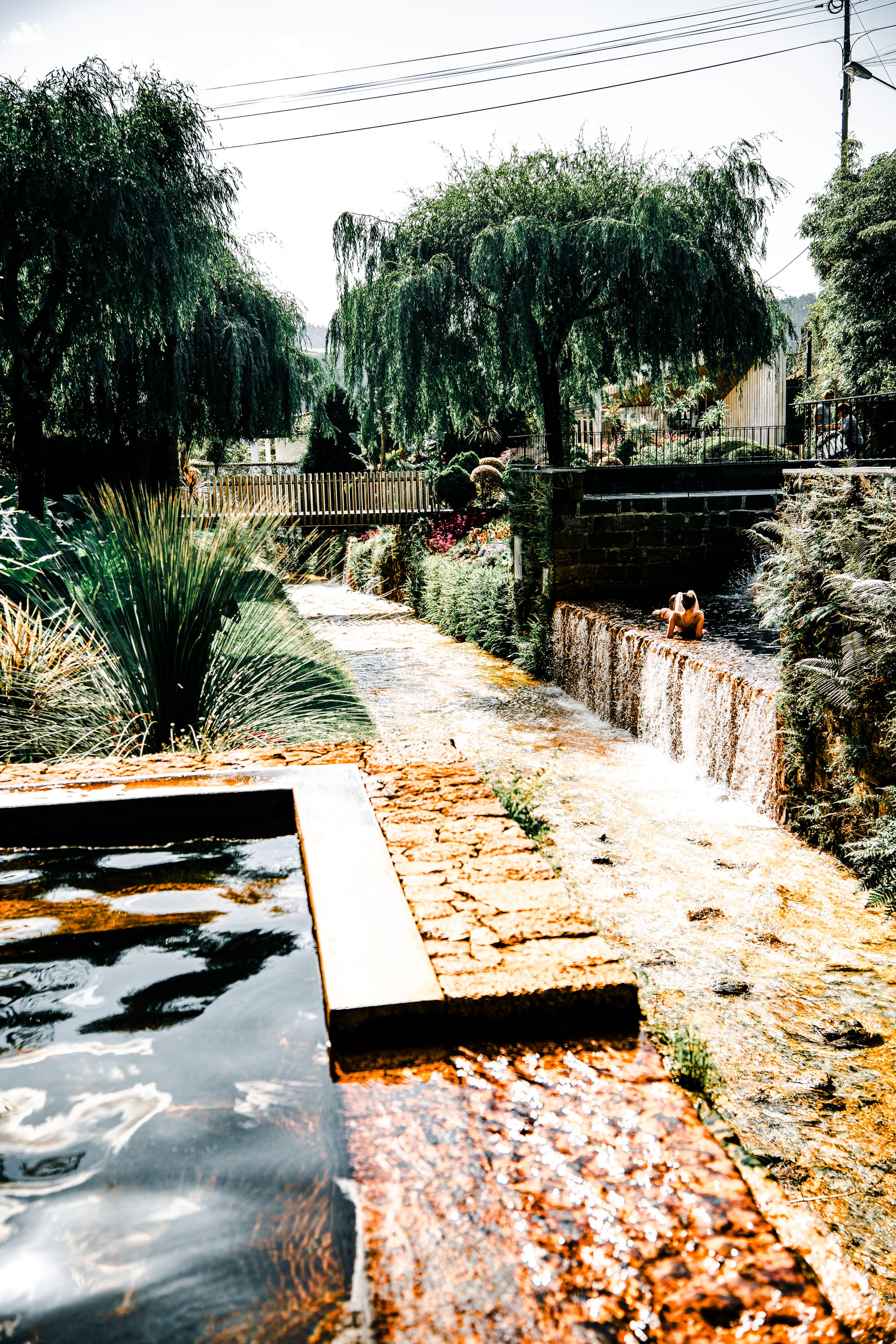 Quiet groves and garden beds border the streams and pools throughout the hot springs