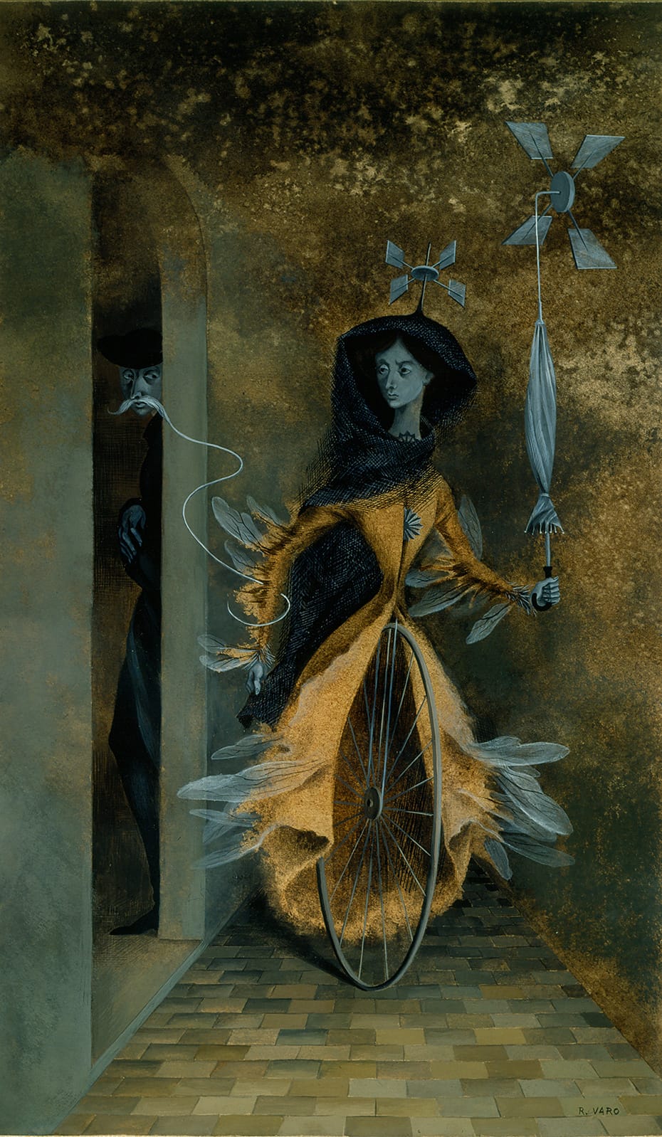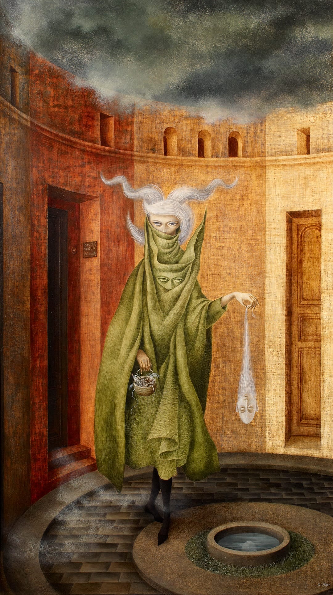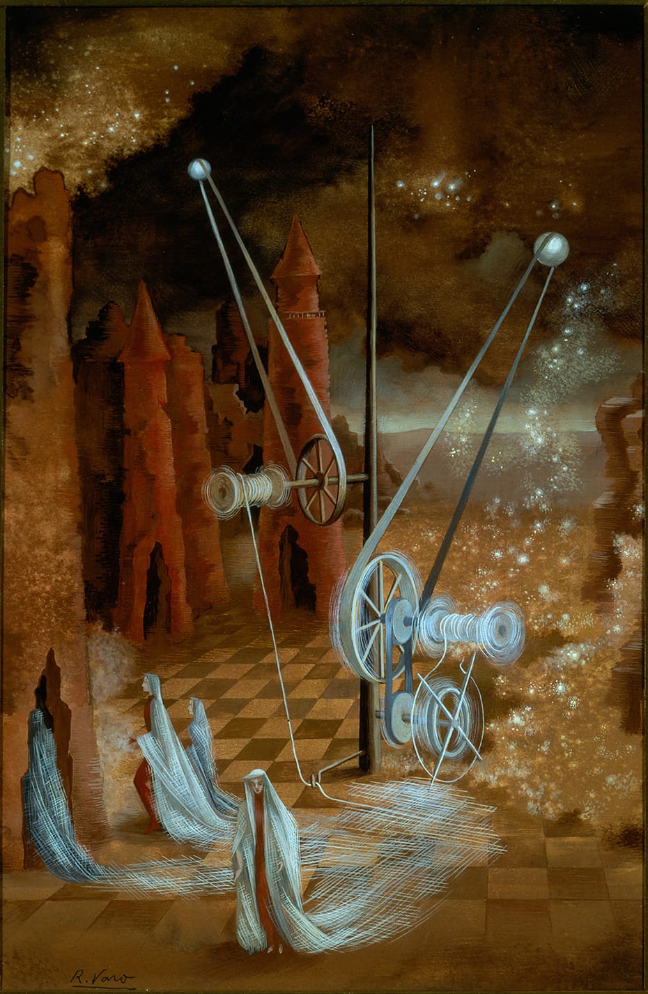 Remedios Varo was a Spanish-born, Mexico-based painter whose work sits at the intersection of surrealism, mysticism, and scientific imagination. Trained at the Real Academia de Bellas Artes de San Fernando in Madrid, she developed a rigorous technical foundation before becoming entangled in the avant-garde currents of pre-war Europe. Her early life was marked by displacement, first through the upheavals of the Spanish Civil War, and later through exile in Paris, where she encountered the Surrealist circle before eventually settling in Mexico. Alongside these influences, her imagination was shaped by literary and speculative traditions. Echoes of Edgar Allan Poe’s psychological architectures and Jules Verne’s scientific adventures surface in the strange narrative logic of her worlds.