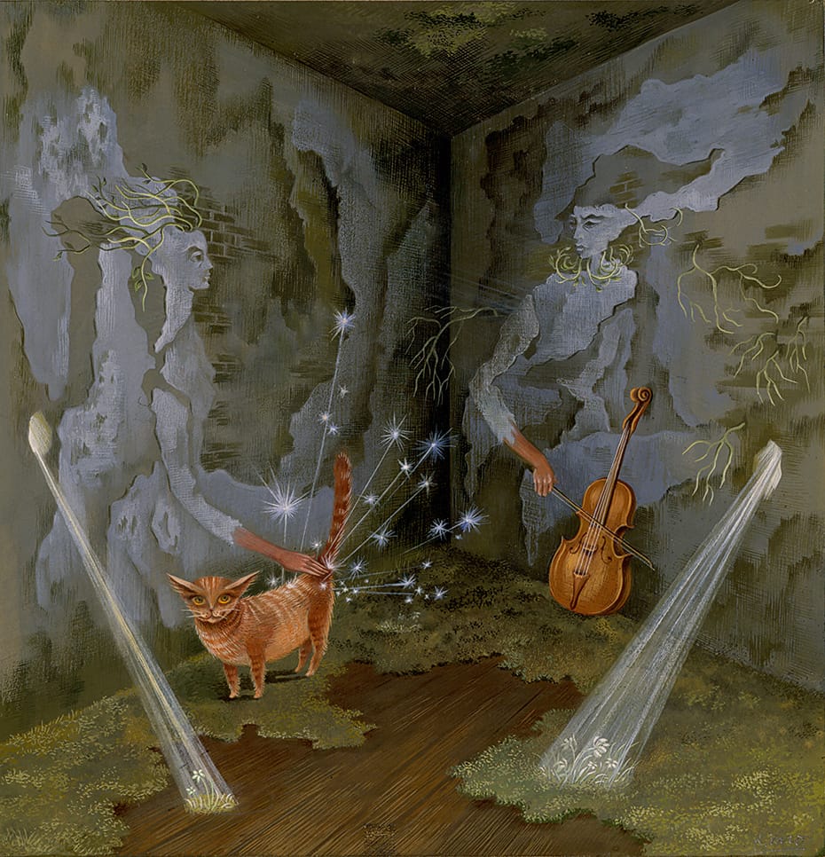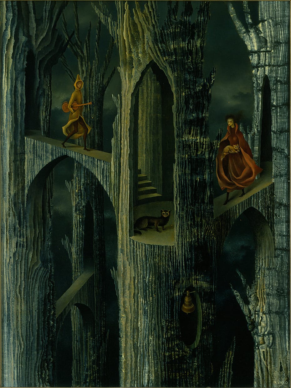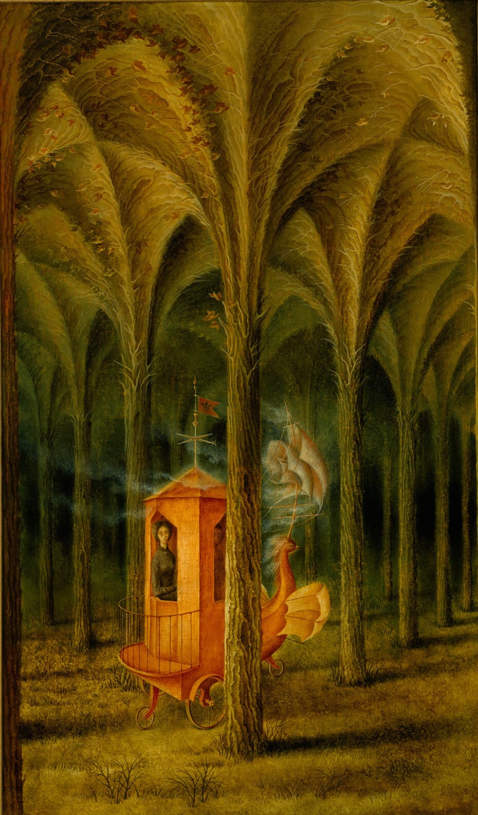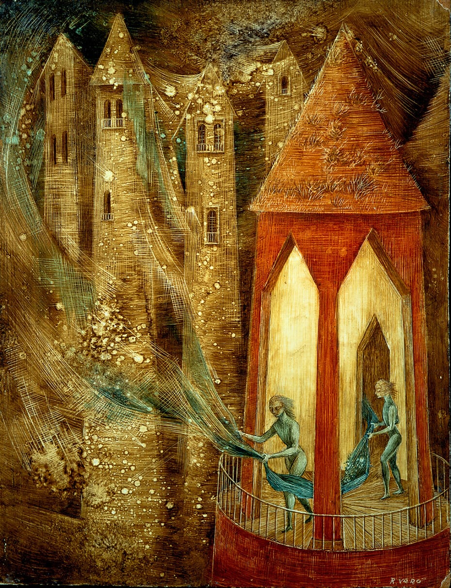 Remedios Varo was a Spanish-born, Mexico-based painter whose work sits at the intersection of surrealism, mysticism, and scientific imagination. Trained at the Real Academia de Bellas Artes de San Fernando in Madrid, she developed a rigorous technical foundation before becoming entangled in the avant-garde currents of pre-war Europe. Her early life was marked by displacement, first through the upheavals of the Spanish Civil War, and later through exile in Paris, where she encountered the Surrealist circle before eventually settling in Mexico. Alongside these influences, her imagination was shaped by literary and speculative traditions. Echoes of Edgar Allan Poe’s psychological architectures and Jules Verne’s scientific adventures surface in the strange narrative logic of her worlds.