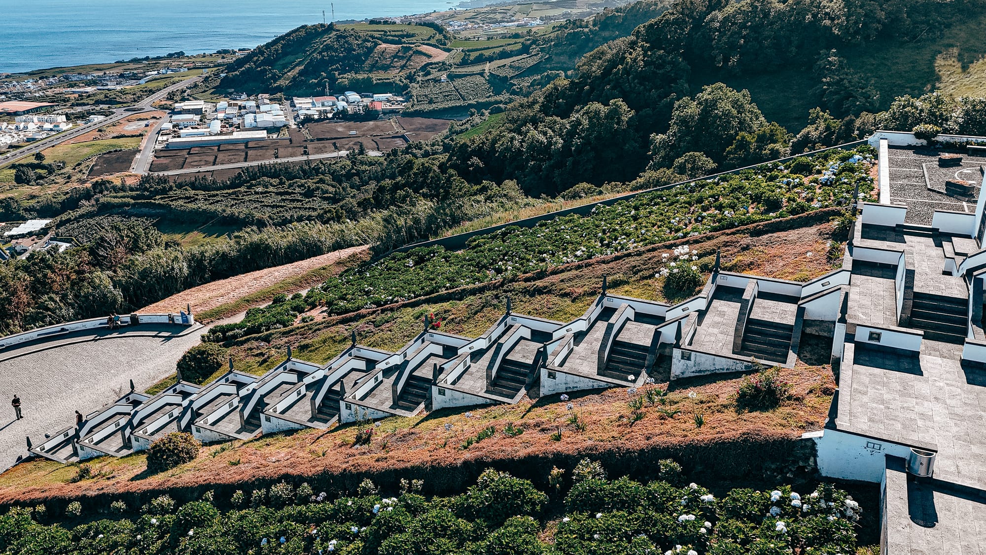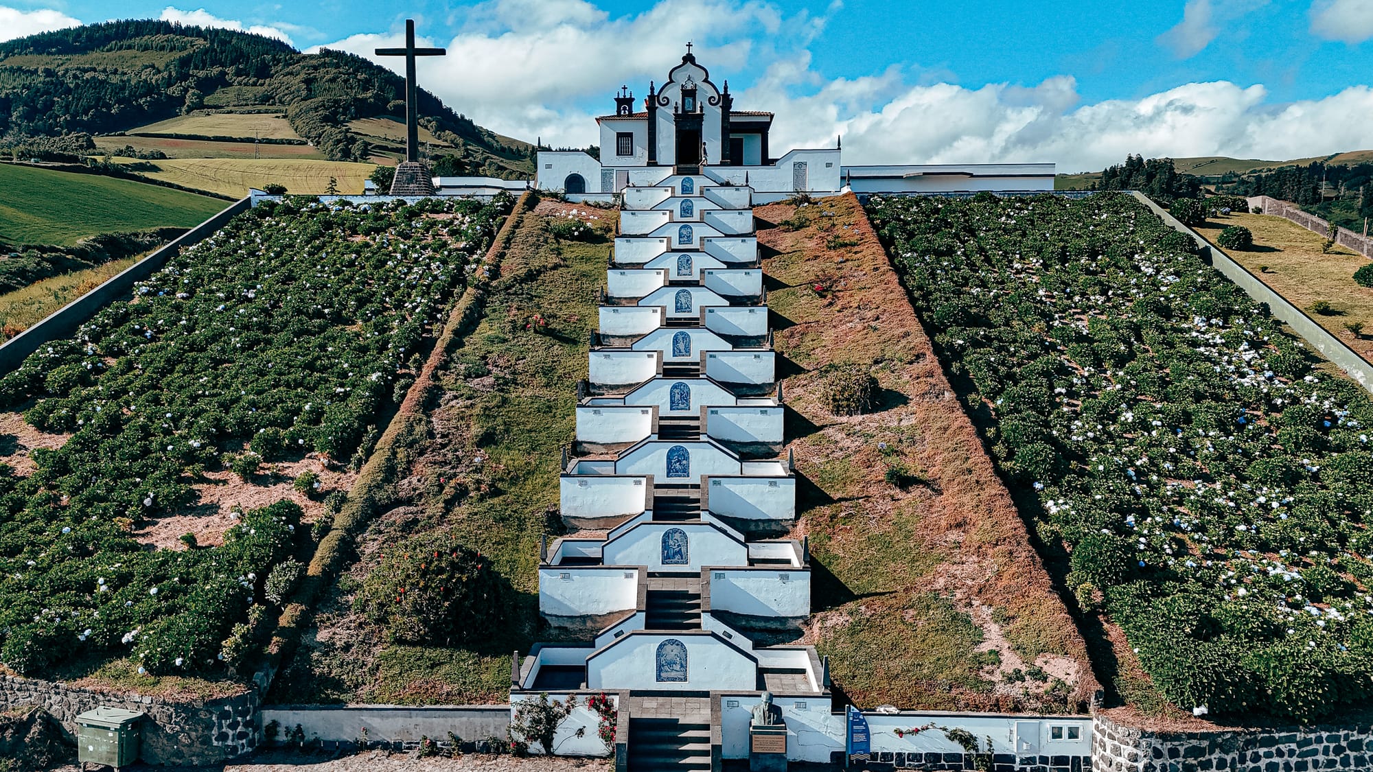 Whether glimpsed from the town below or approached through its lush hillside flank, the sanctuary's architectural clarity and commanding view mark it as one of the most uniquely poetic structures in the Azores.