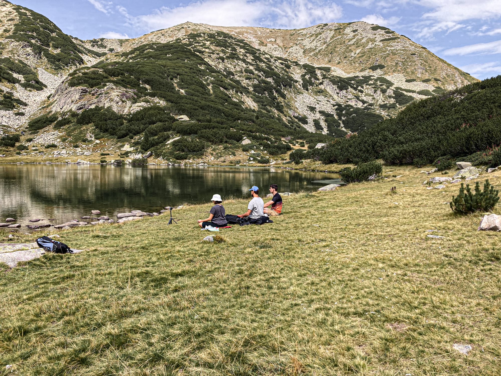 Summer walkers near Vihren Hut, setting off into the trails of Pirin National Park