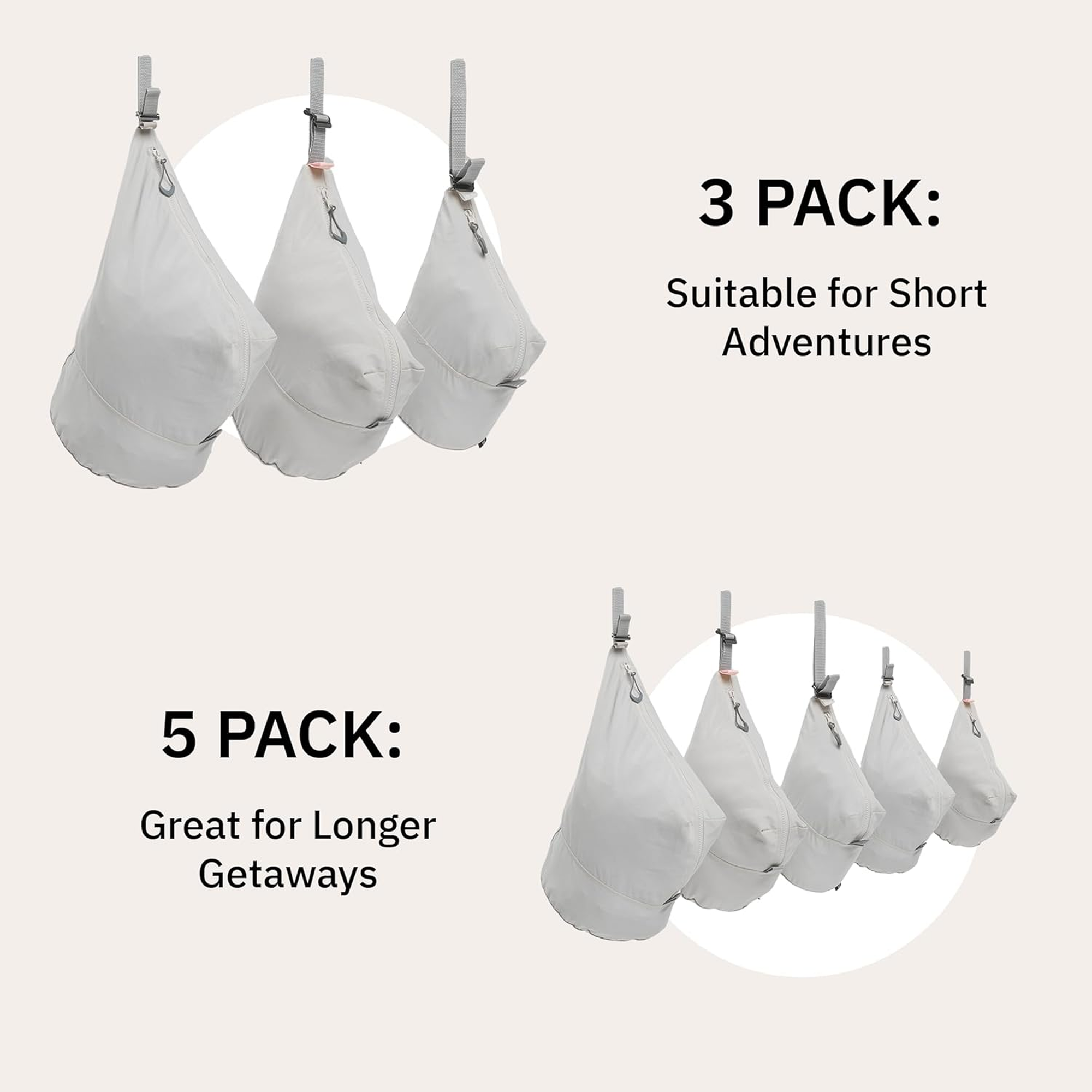 We love these packing pods, mostly because they don't require us to unpack at all. Once you land, you can just hang the pod on a hook and keep everything organized, which we’ve found incredibly convenient.