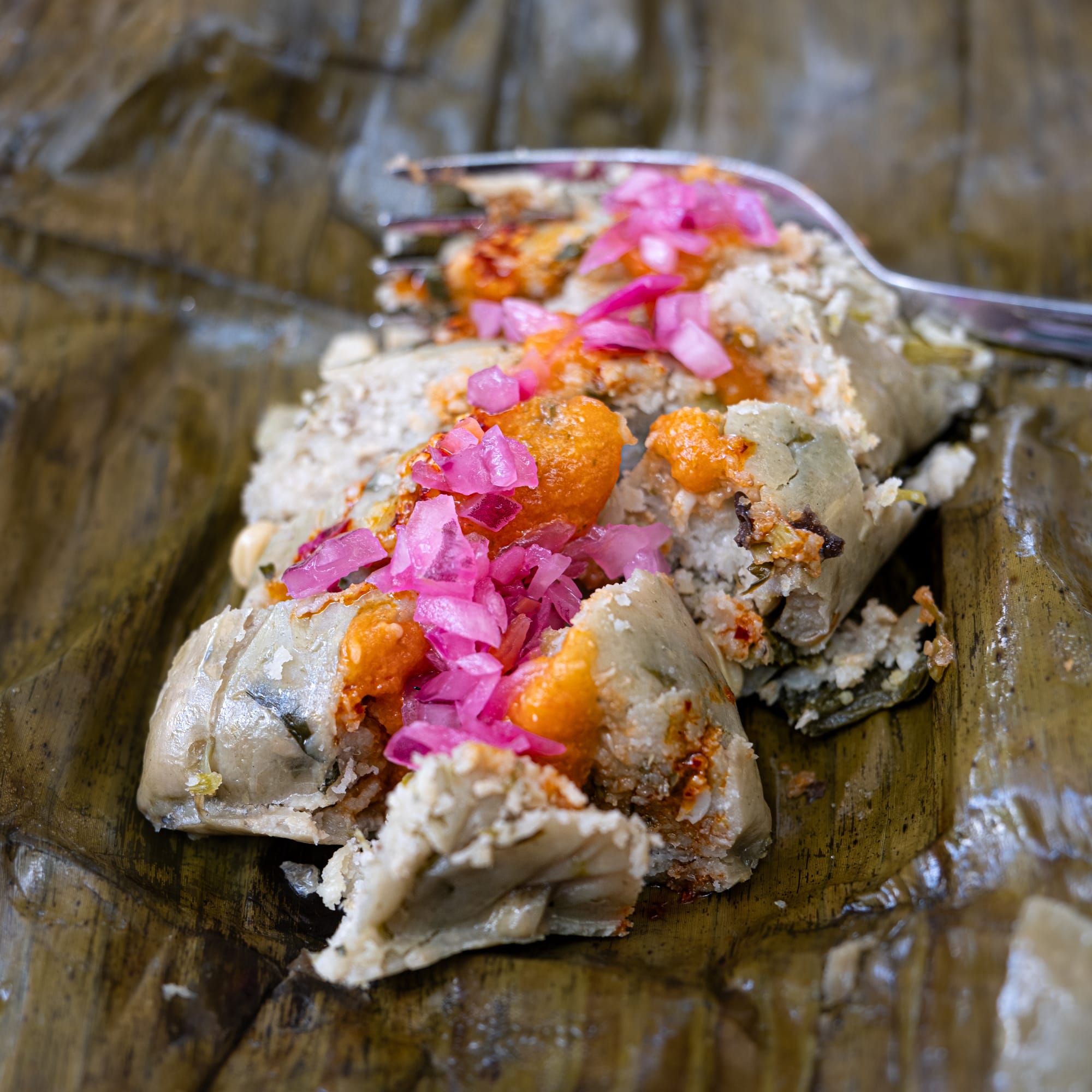 Our favorite vegan restaurant in Tulum, Suculenta has absolutely amazing tamales. We also enjoyed their oyster mushroom tacos, pozole, silik pak, and fried plantains with beans.