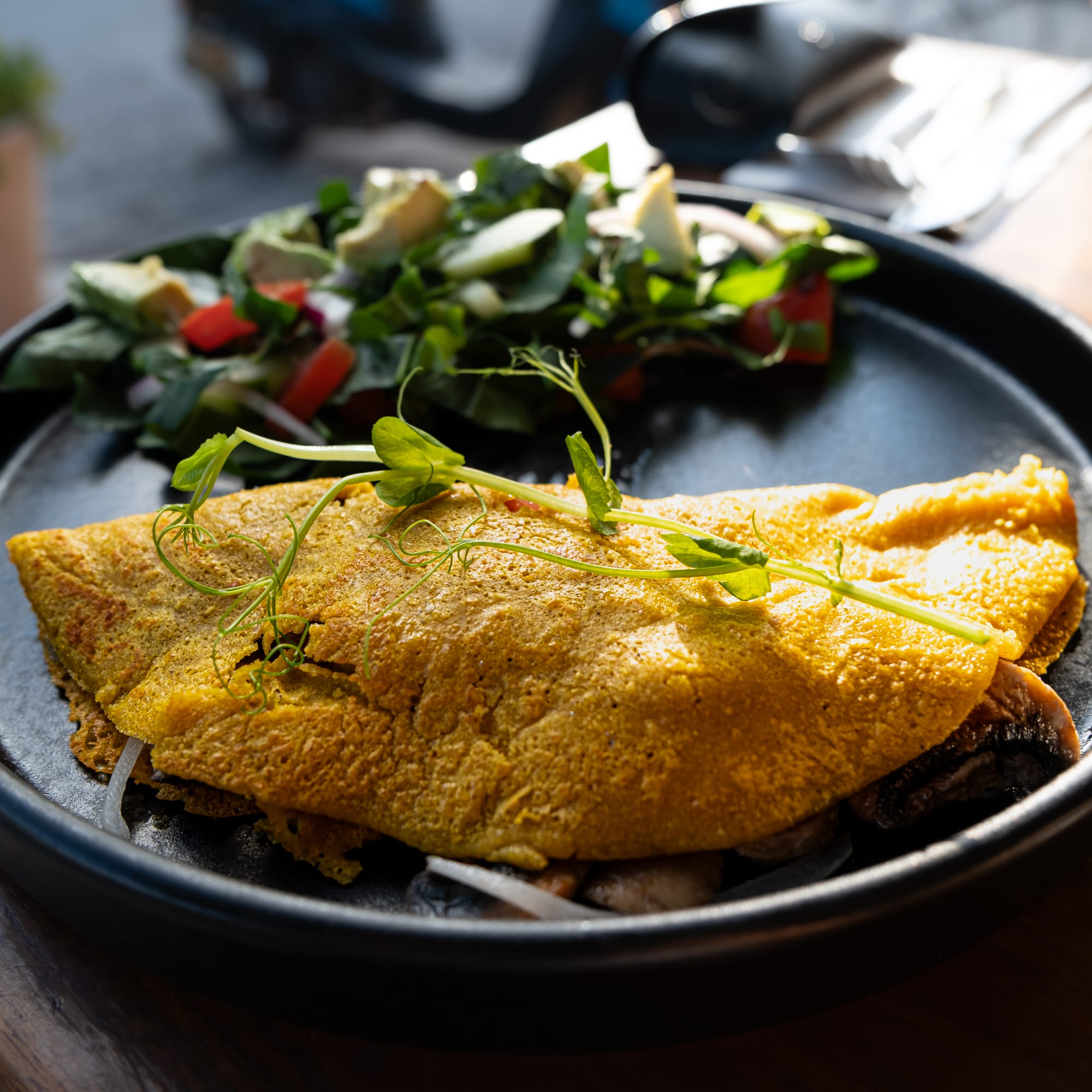 Fully vegetarian, La Hoja Verde has some nice breakfast options. We enjoyed their chickpea omelette.