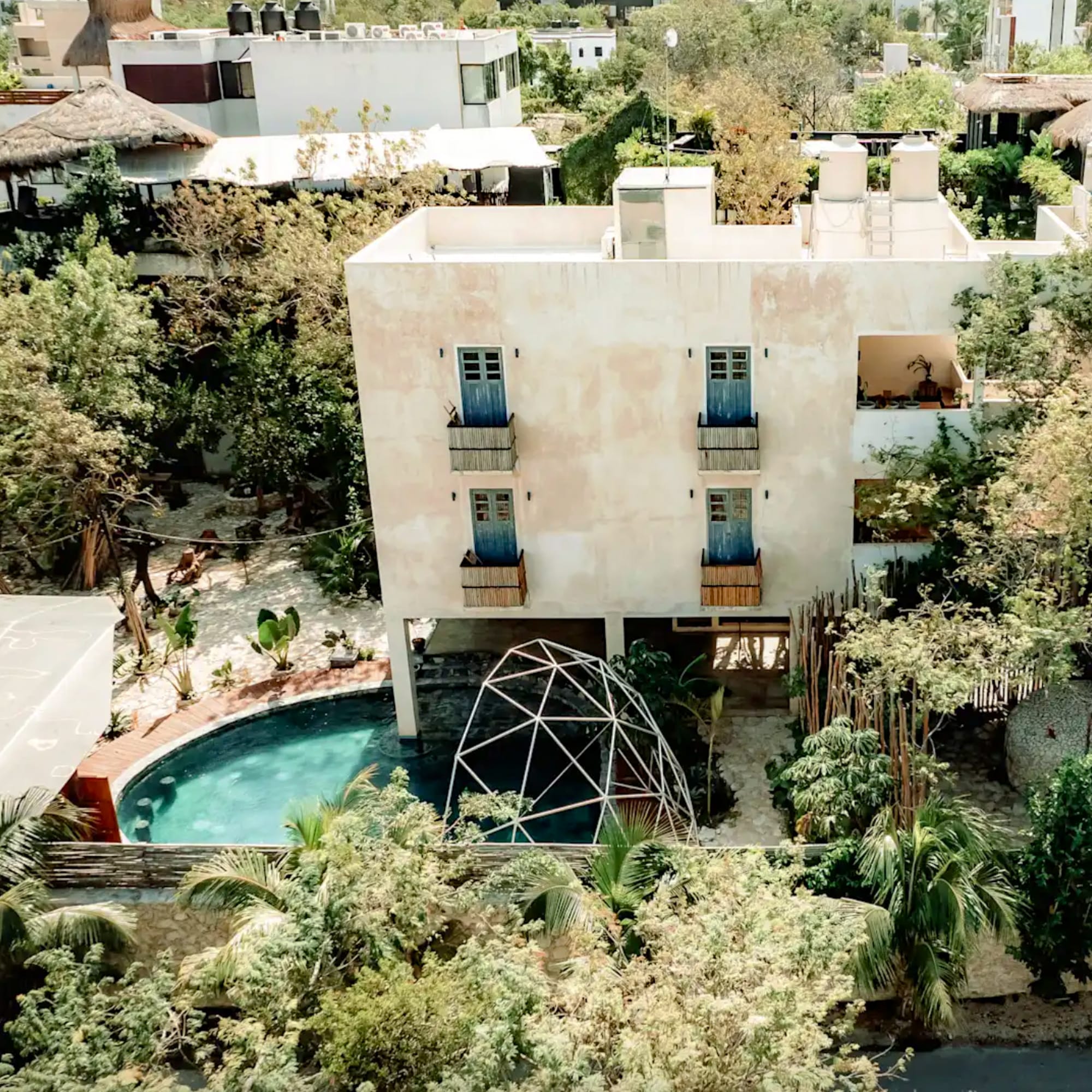 A small apartment-style stay in central Tulum offering a handful of fully equipped suites with private bathrooms and kitchens. The property includes a pool and coworking space, making it a practical option for travelers who want a quiet place to stay while working comfortably.