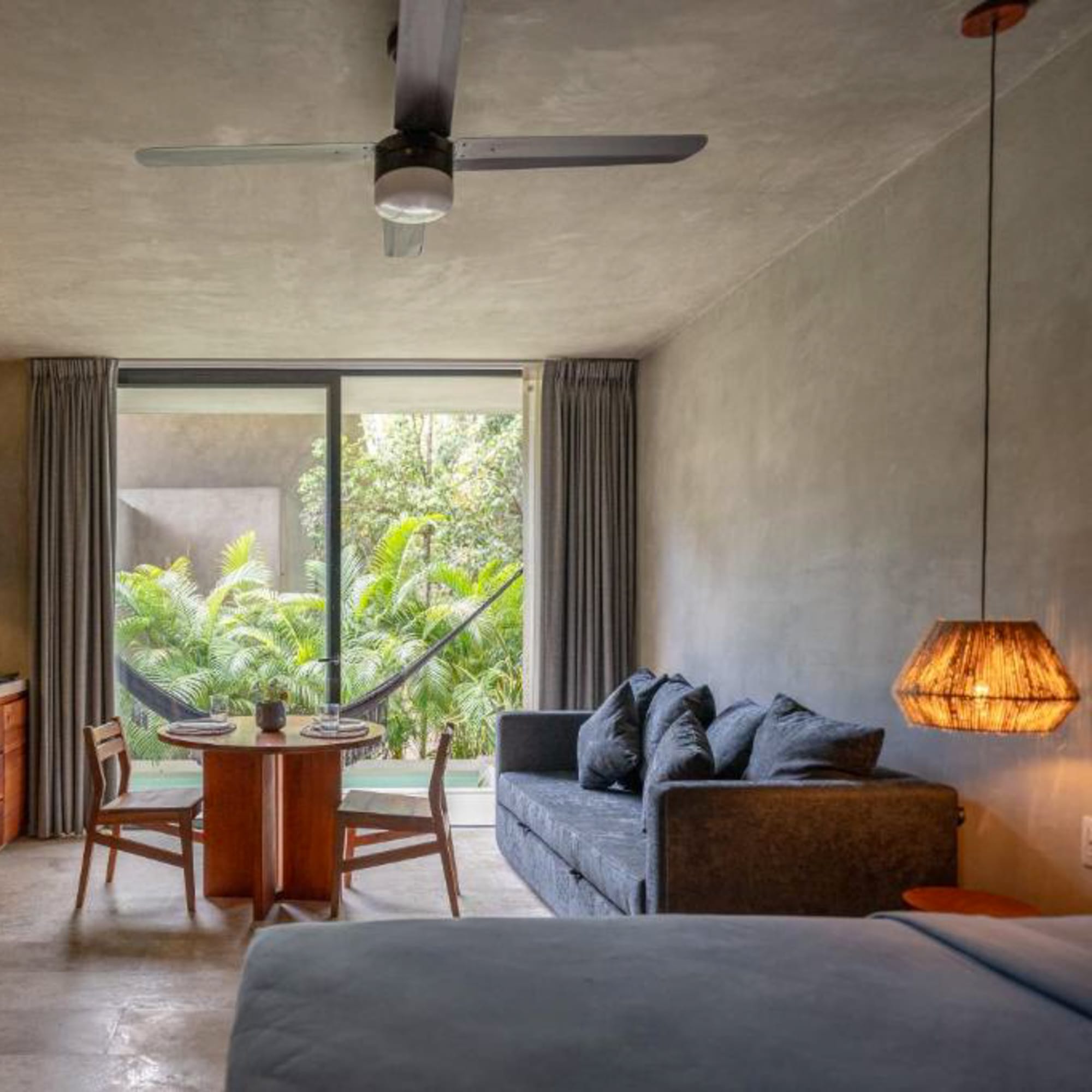 A jungle-set coliving stay in Tulum designed for digital nomads, founders, and creatives looking to live and work in community. Fully equipped apartments are paired with shared spaces including a natural coworking area, two pools, hammocks, and relaxed common areas.