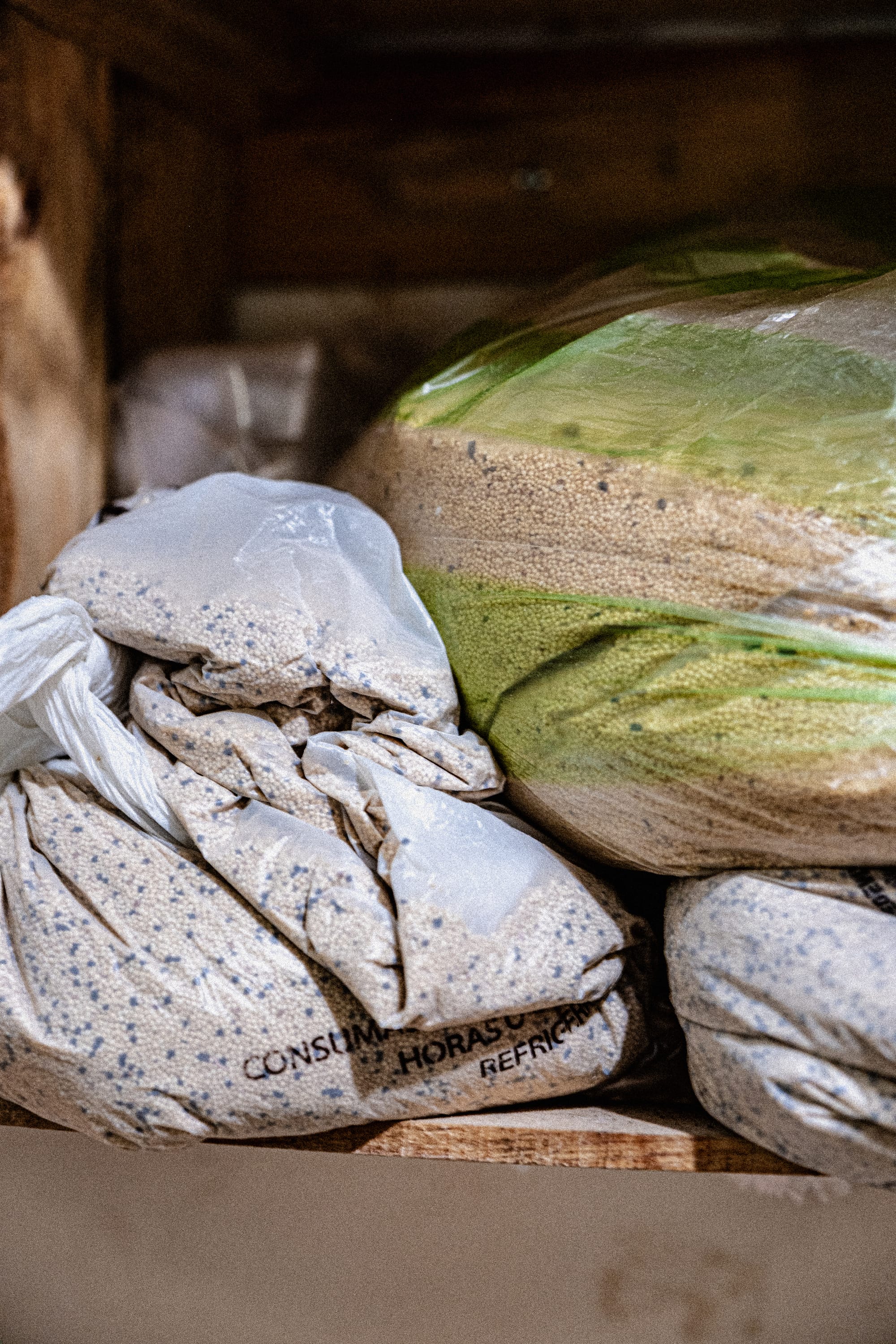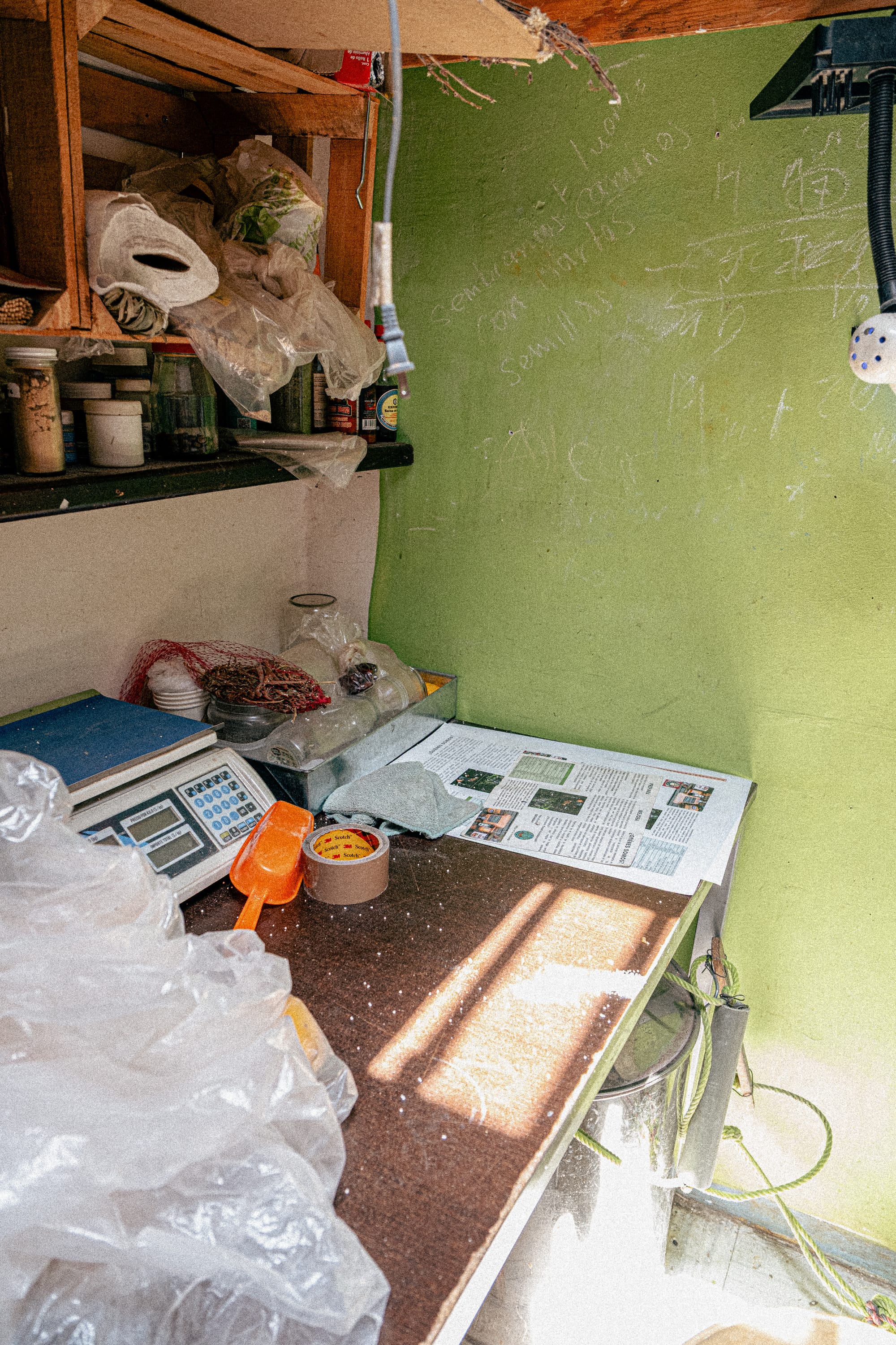 And alongside the plants, downstairs, there are traces of another layer of work, packaging, ingredients, materials prepared for distribution.