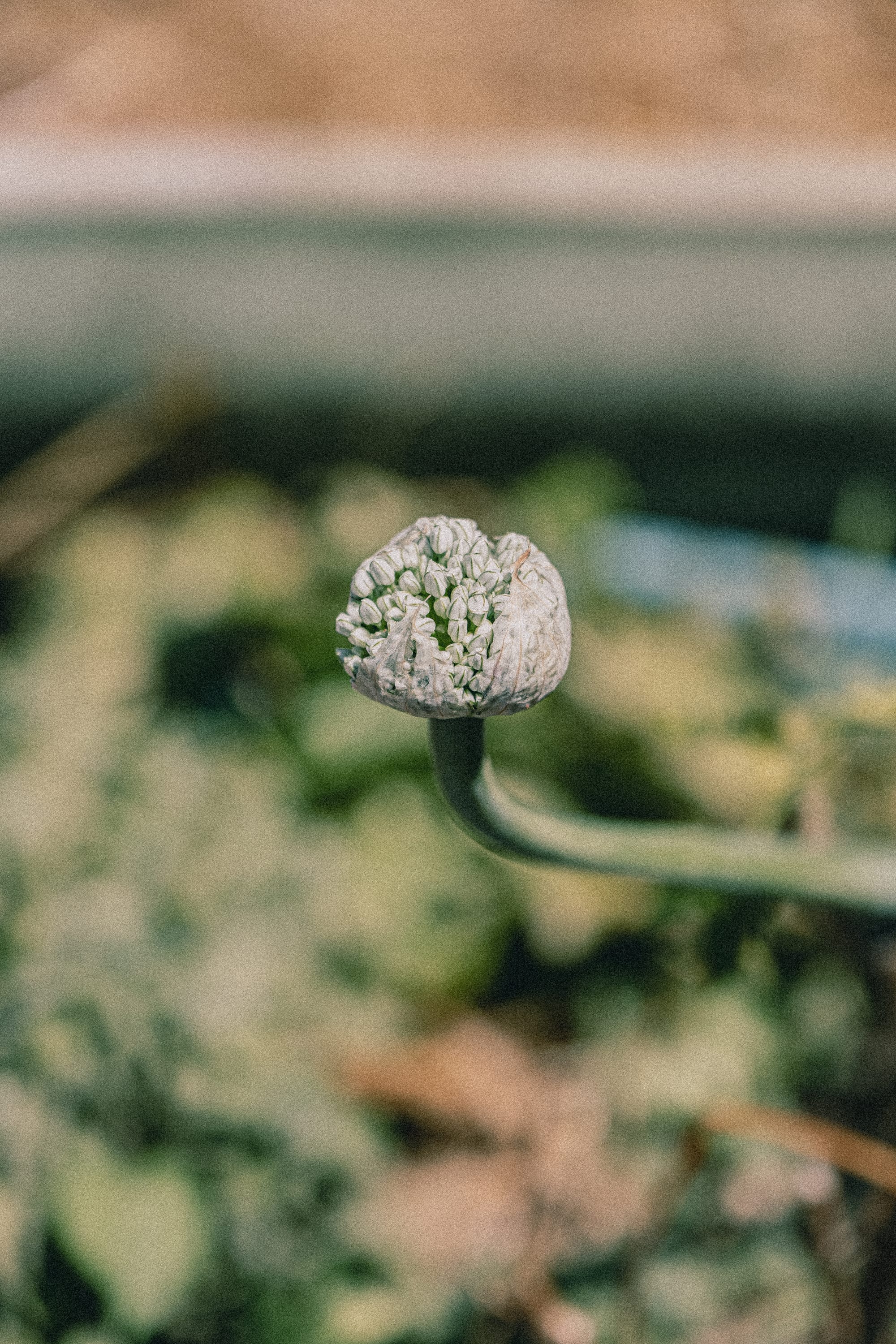 A view from the rooftop and a flowering onion