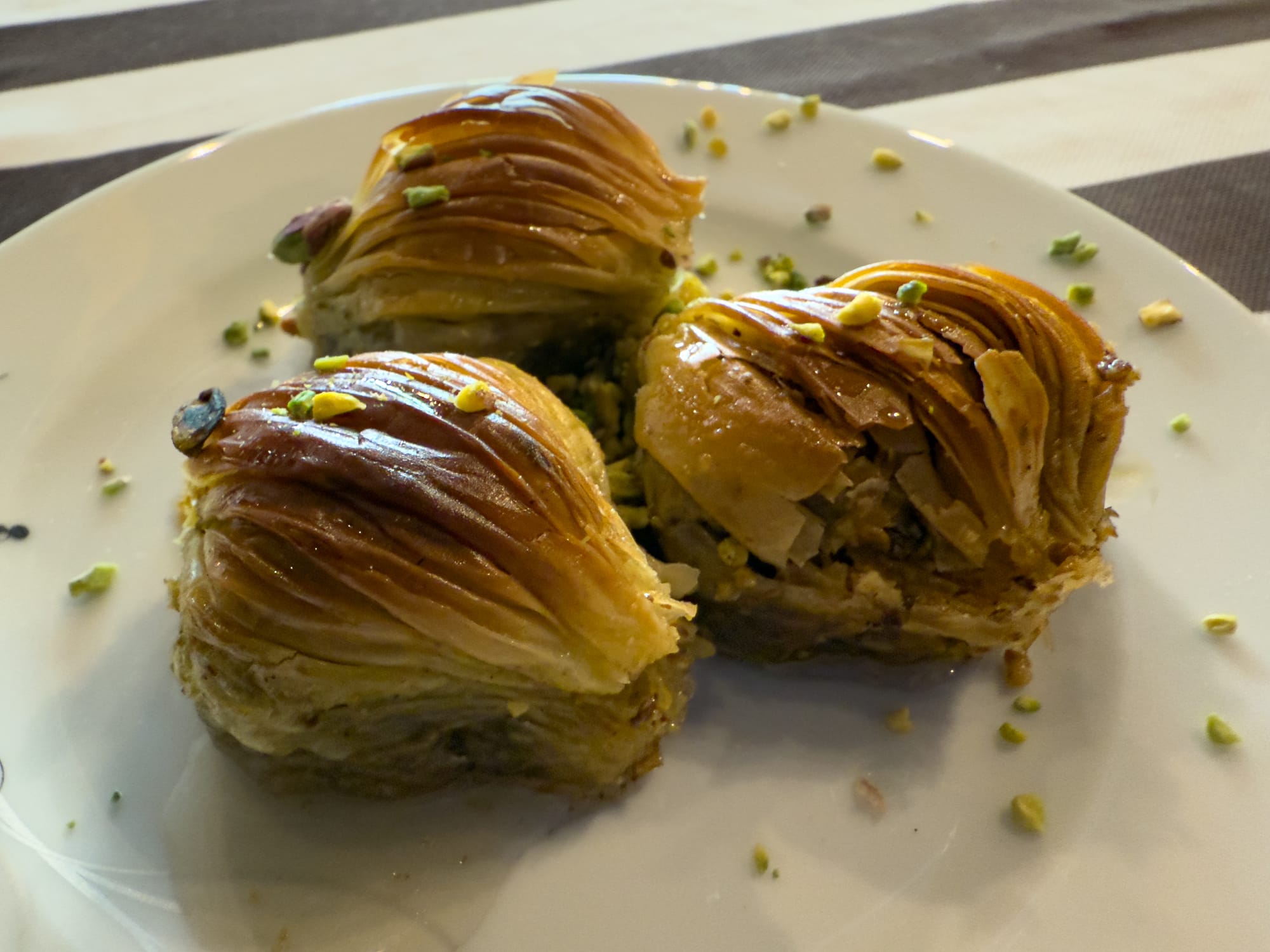 Vegan pistachio baklava and a tangy vegan lemon raw cheesecake from King’s Coffee Shop in Göreme