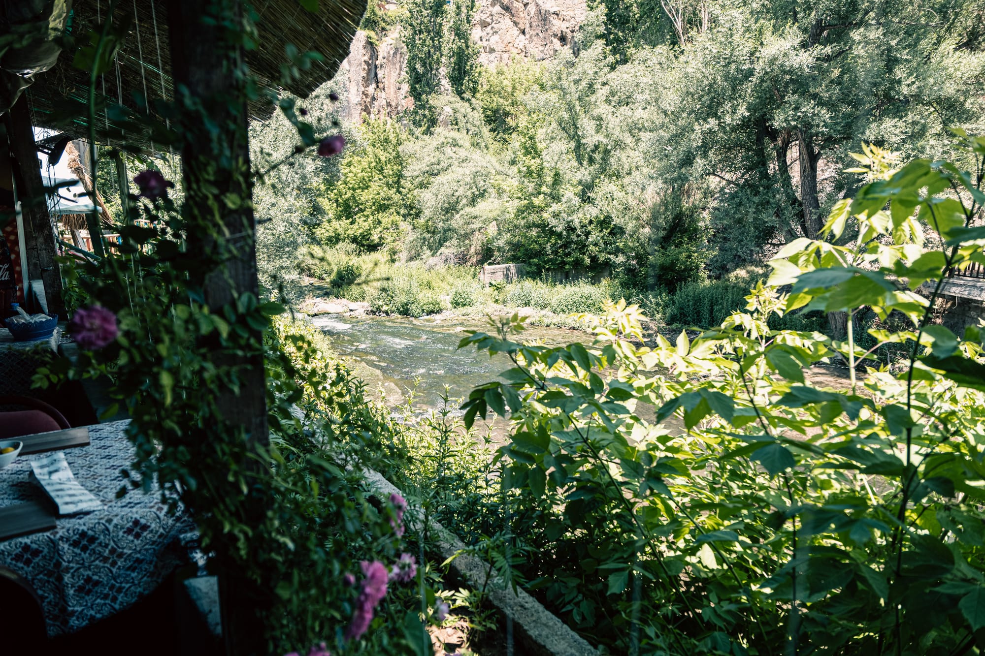 Scenic riverside dining at Star Restaurant in Ihlara Valley, serving vegan vegetable stew with bulgur pilaf