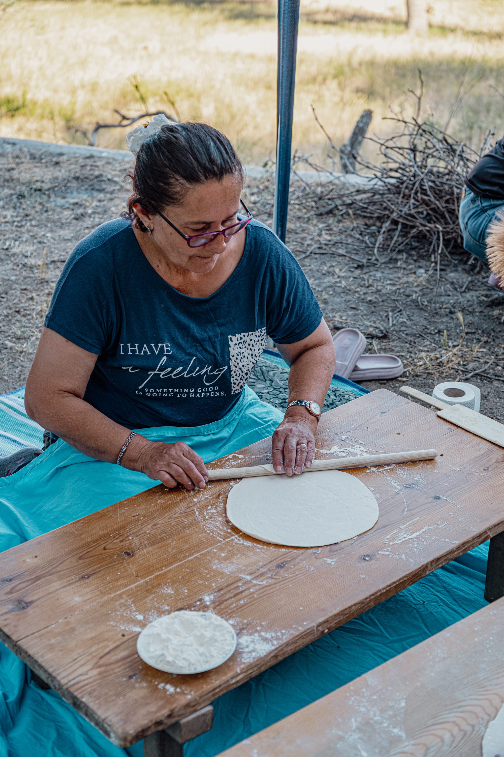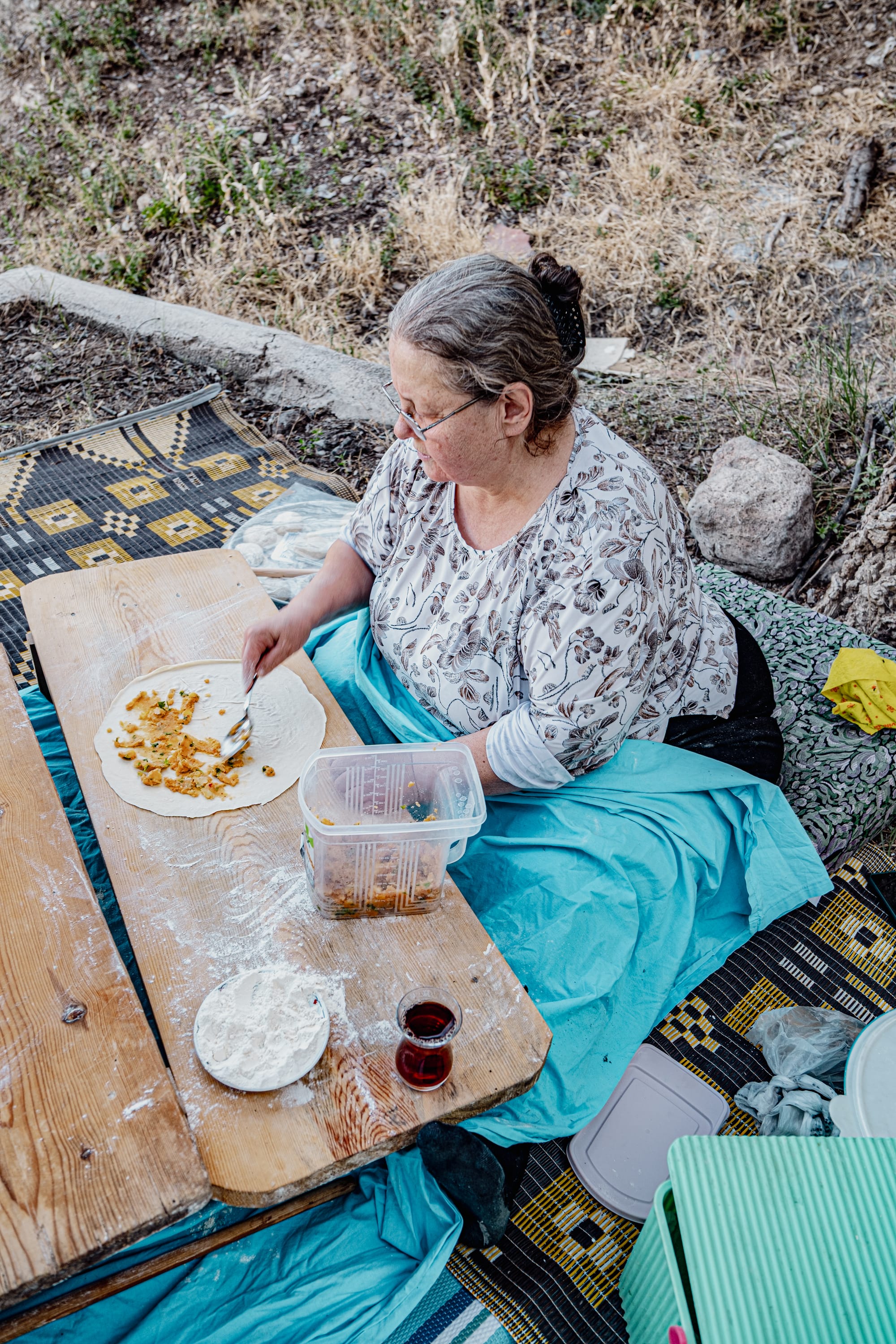 Learning to make traditional vegan gözleme with local women, filled with herbed potato and cooked over an open griddle