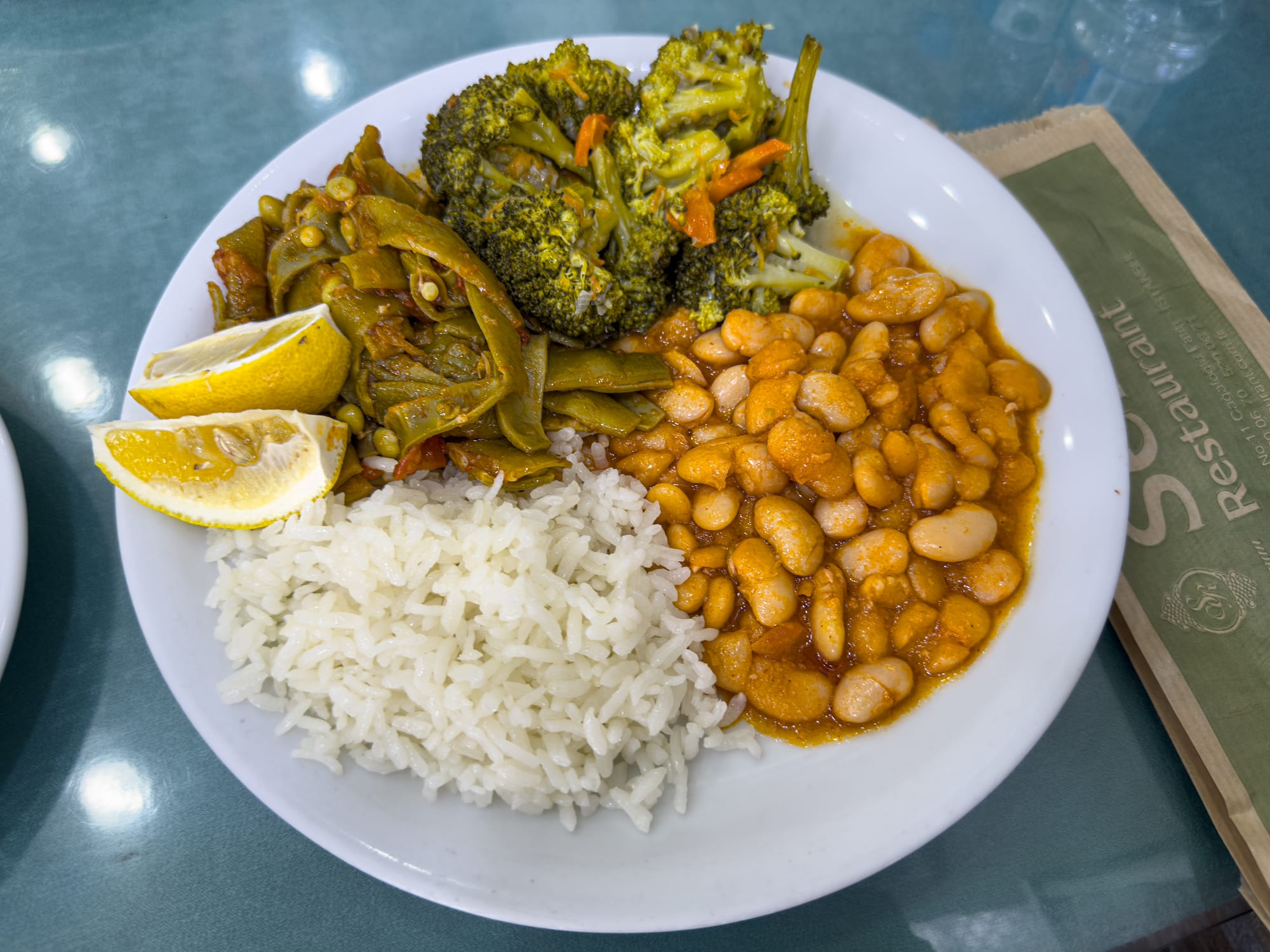 We especially loved their artichoke hearts braised with peas, carrots, and dill—a classic Turkish dish that celebrates seasonal produce with freshness and light acidity. Alongside that, we regularly picked up plates of white beans in tomato sauce, green beans stewed with onions, and soft, tender broccoli served warm over rice. Each meal came out fast, full of flavor, and remarkably affordable.
