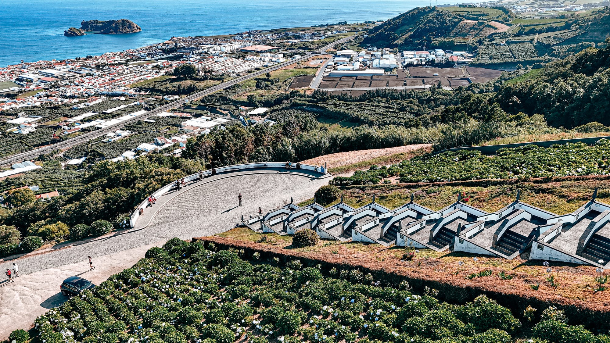 For one of the most iconic views over Vila Franca do Campo and its offshore islet, head to Miradouro da Nossa Senhora da Paz, right beside the sanctuary.